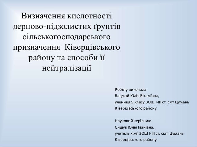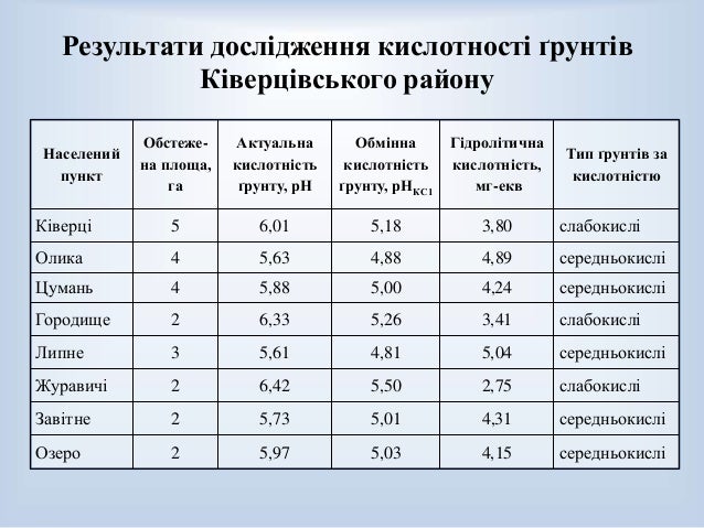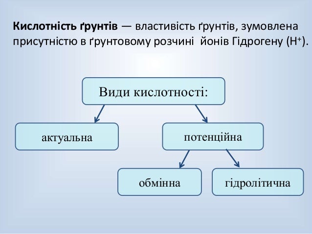 Кислотність визначається наявністю і співвідношенням в ґрунтовому розчині водневих (Н +) гідроксильних (ОН) іонів .