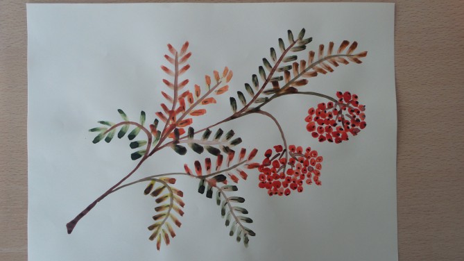 Кисть рябинки гроздь калинки рисование в средней