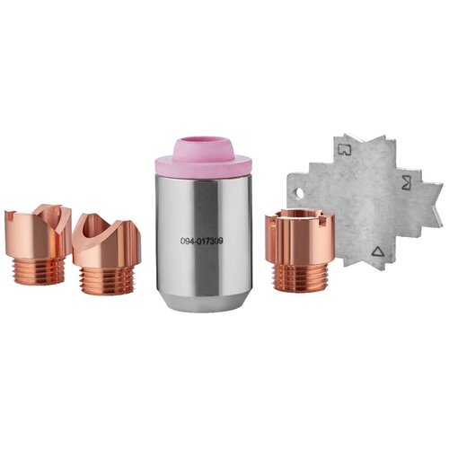 Kit de soudage SPOT - un ensemble de consommables pour l'assemblage de tôles et de structures sous l'influence locale du courant électrique et de l'échauffement du matériau. Le kit se compose d'une buse spéciale, d'un gabarit d'installation et de trois buses : buses pour joints bout à bout et à recouvrement, buses pour joints d'angle et internes, buses pour joints externes d'angle. Les buses peuvent être utilisées avec des torches pour le soudage TIG TM "Svarog" : TS 17, TS 18, TS 26, Super TS 18. Contenu du kit de soudage par points : 1. Porte-buse en céramique2. Isolateur3. Buse pour joints bout à bout et chevauchement4. Buse pour connexions internes d'angle5. Buse pour connexions externes d'angle6. Modèle d'installationKit de soudage SPOT - un ensemble de consommables pour l'assemblage de tôles et de structures sous l'influence locale du courant électrique et de l'échauffement du matériau. Le kit se compose d'une buse spéciale, d'un gabarit d'installation et de trois buses : buses pour joints bout à bout et à recouvrement, buses pour joints d'angle et internes, buses pour joints externes d'angle. Les buses peuvent être utilisées avec des torches pour le soudage TIG TM "Svarog" : TS 17, TS 18, TS 26, Super TS 18.