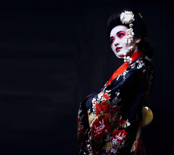 Гейша, древняя Япония, классическая японская женщина древний стиль рисования вектор . Красивая японская гейша