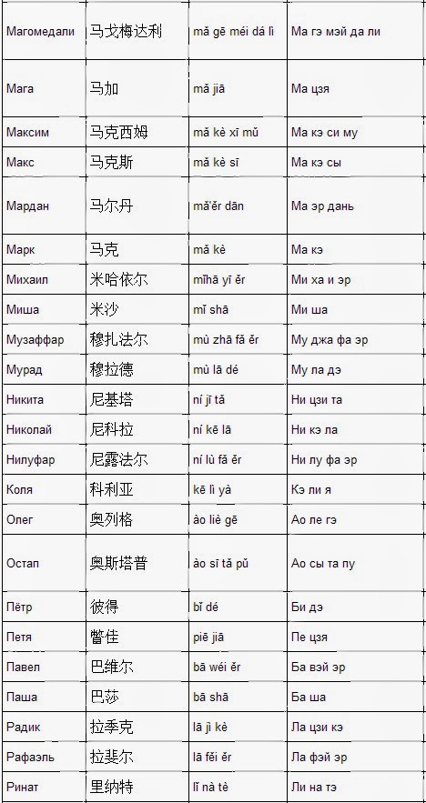 Китайские имена на а