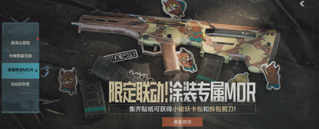 Лимитированный скин на оружие вместе с тактическим оборудованием уже в игре! Перейдите в интерфейс мероприятия, чтобы собрать наклейки, наклеить их на свой эксклюзивный MDR и поделиться им с друзьями. Вы также можете получить набор карточек со свинкой и ножницы для распаковки!
