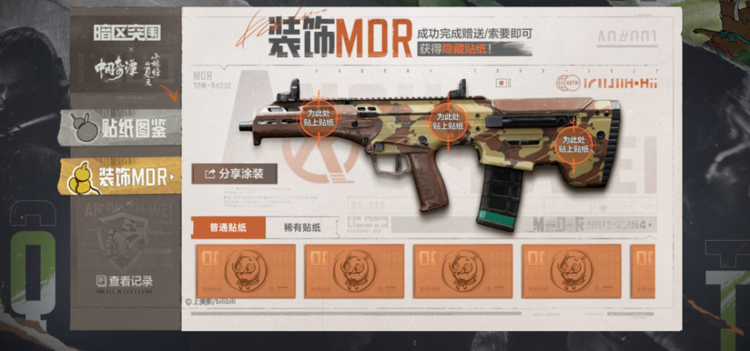 Перейдите на экран "Украсить MDR" после получения наклеек, чтобы украсить оружие полученными наклейками!