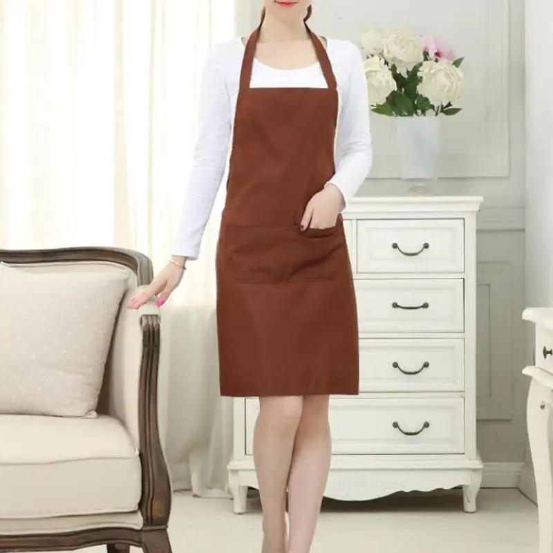 Kitchen Apron Pure Color With Double Pocket For Home Cleaning Washing Helper Polyester For Woman Men Cooking Apron Adjustable - Купить с бесплатной доставкой