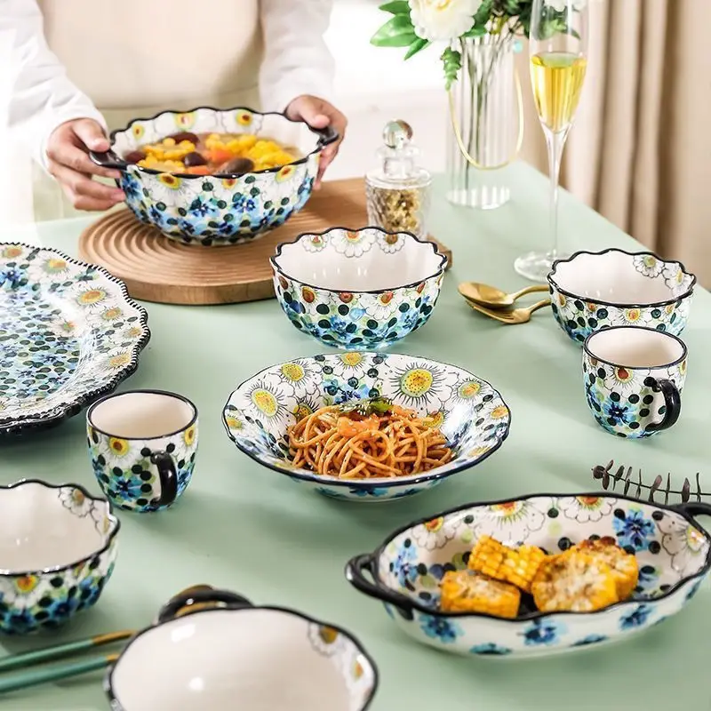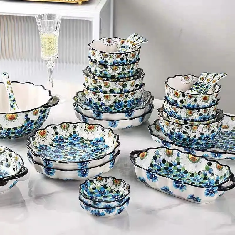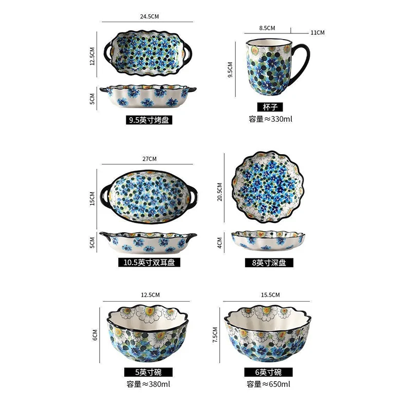 ZckrVLWJTHere you can buy Kitchen Ceramic Tableware Blue Berry Hand-painted Underglaze Colored Ceramic Bowl Plate Double Ear Baking Tray for Household Use with free delivery to your post office.