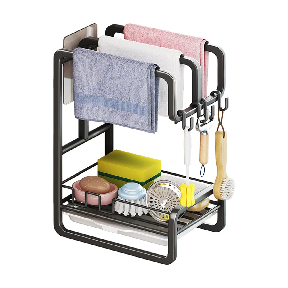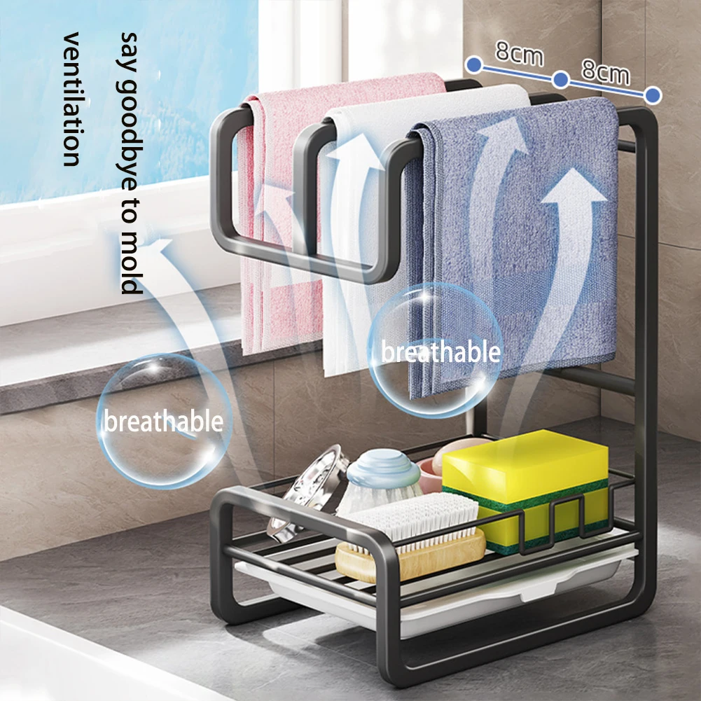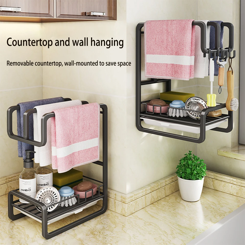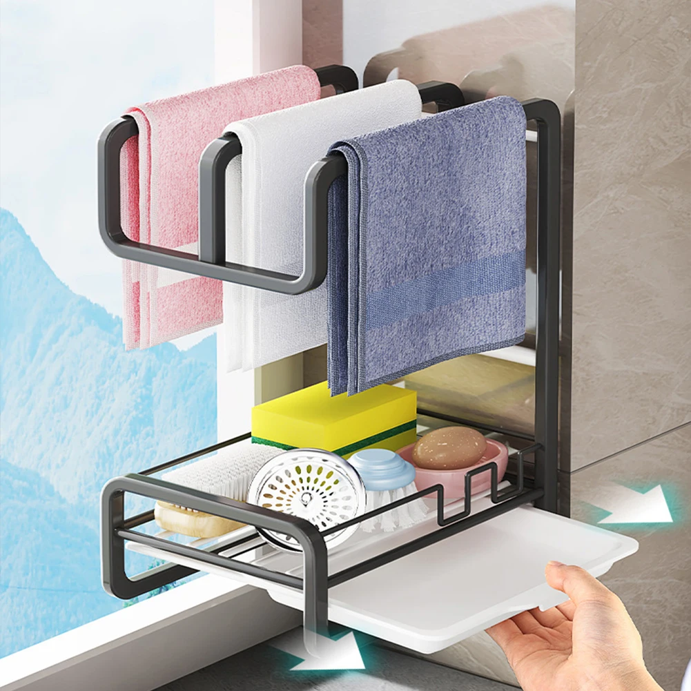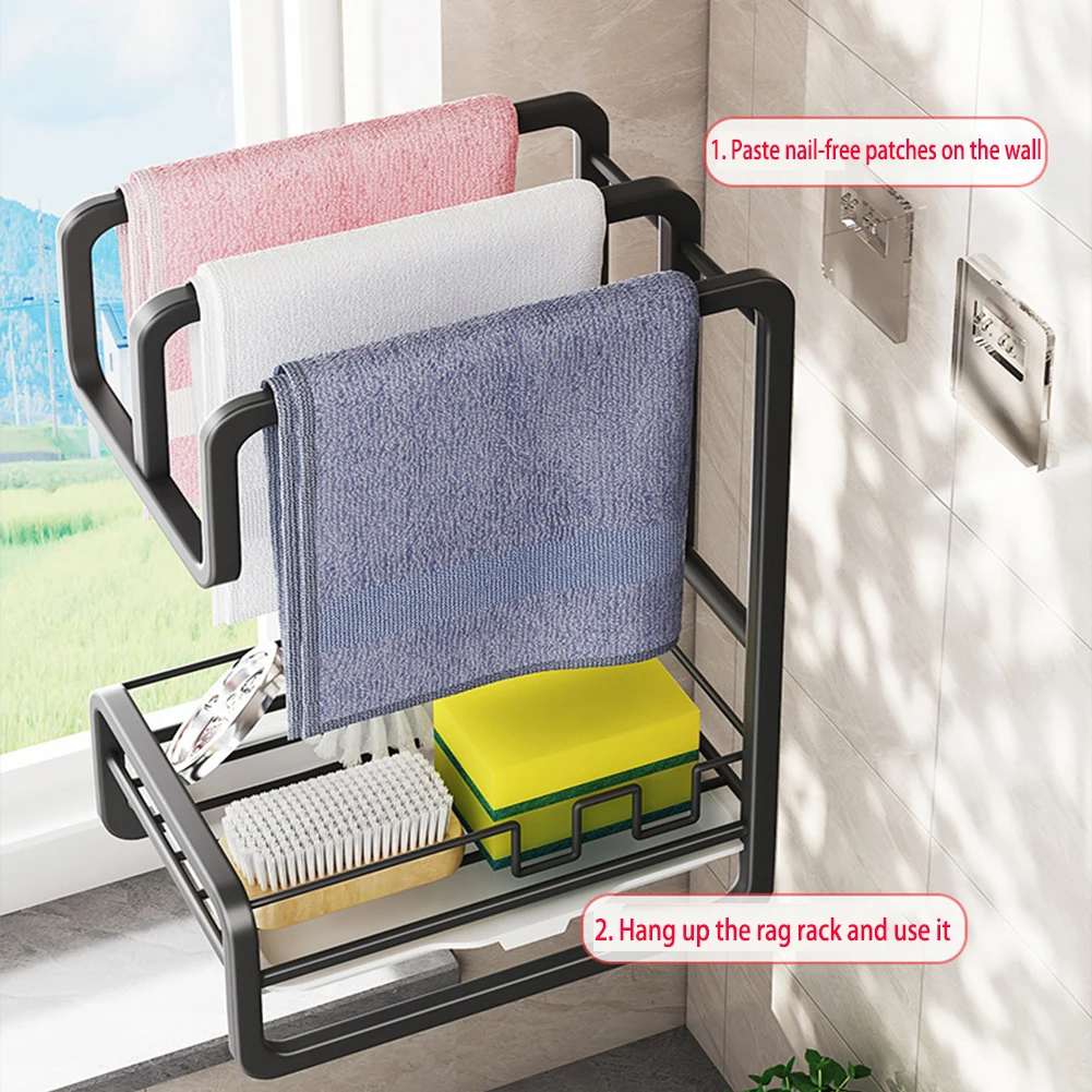 Kitchen Dishcloth Towel Holder, Wall, Sink Rag, Sponge Drain Storage Rack, Large Capacity, Soap Dispenser, Brush Organizer - Купить с бесплатной доставкой