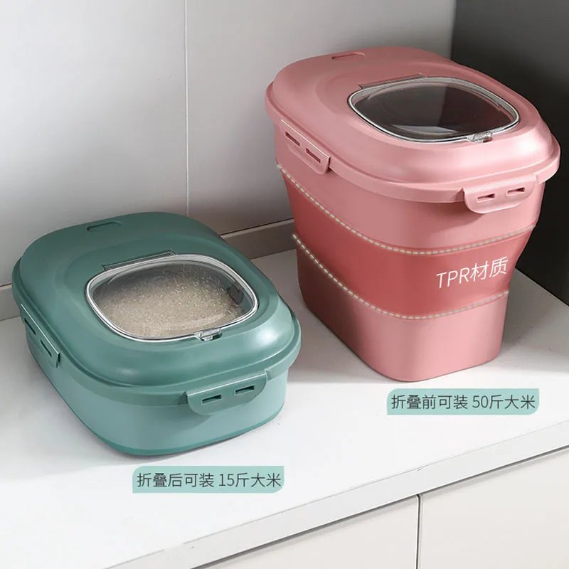 Kitchen Folding Storage Rice Storage Bin Transparent Sealed 25.00kg Grains Rice Bucket Household Moisture-Proof Insect-Proof - Купить с бесплатной доставкой