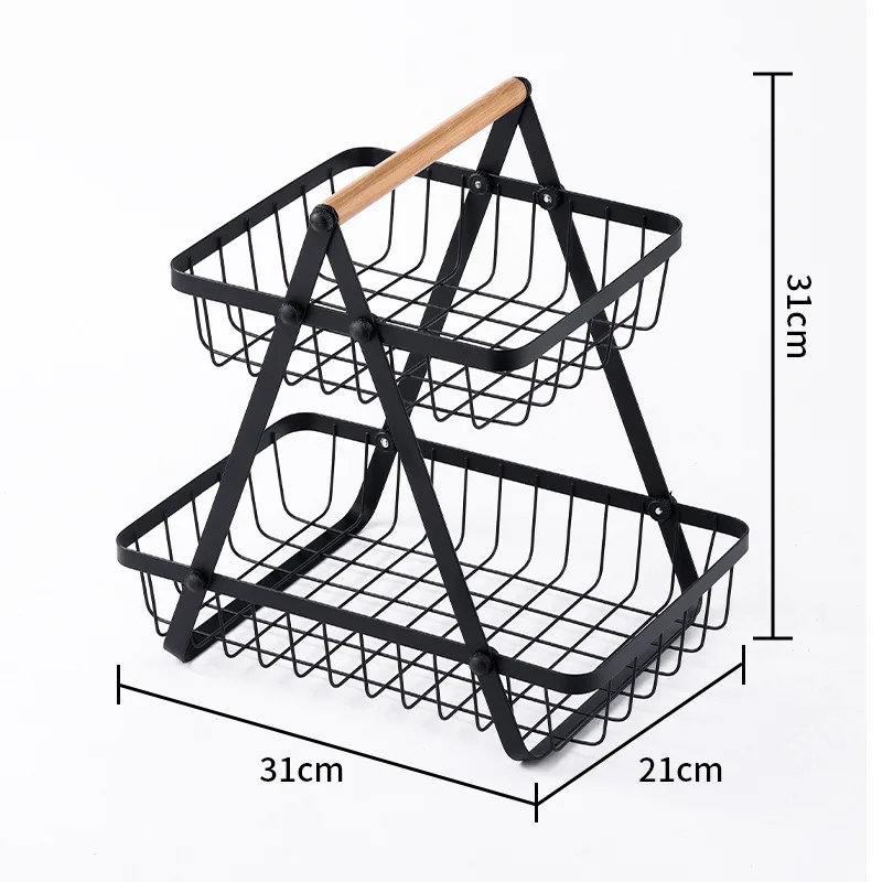 URhvIEGJoNHere you can buy Kitchen Rack Organizer Shelf Fruit Tray Vegetable Organizer Storage Two Layers Triangle Metal Home Accessories Black White Color with free delivery to your post office.