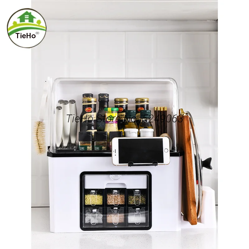 «Kitchen Seasoning Jars Countertop Organizer Household Multi-function Storage Shelf With Knife Holder Dust Cover Cutting Board» по лучшей цене на рынке! Всего за 15$ (1425рублей)