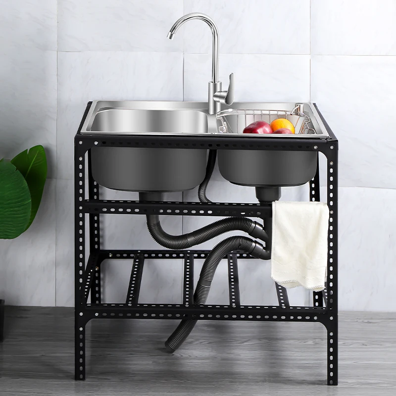 Kitchen Simple Stainless Steel Sink with Bracket Washing Basin Double-Sink Pool Household Scullery Wash Basin Pool Rack - Купить с бесплатной доставкой