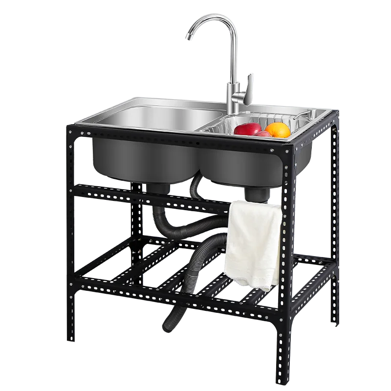 inDLTkjKZHere you can buy Kitchen Simple Stainless Steel Sink with Bracket Washing Basin Double-Sink Pool Household Scullery Wash Basin Pool Rack with free delivery to your post office.