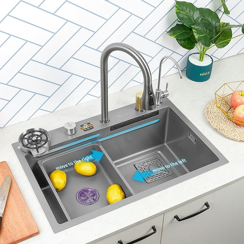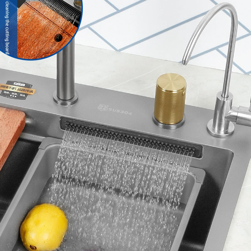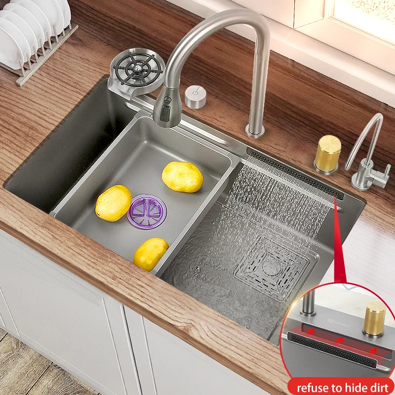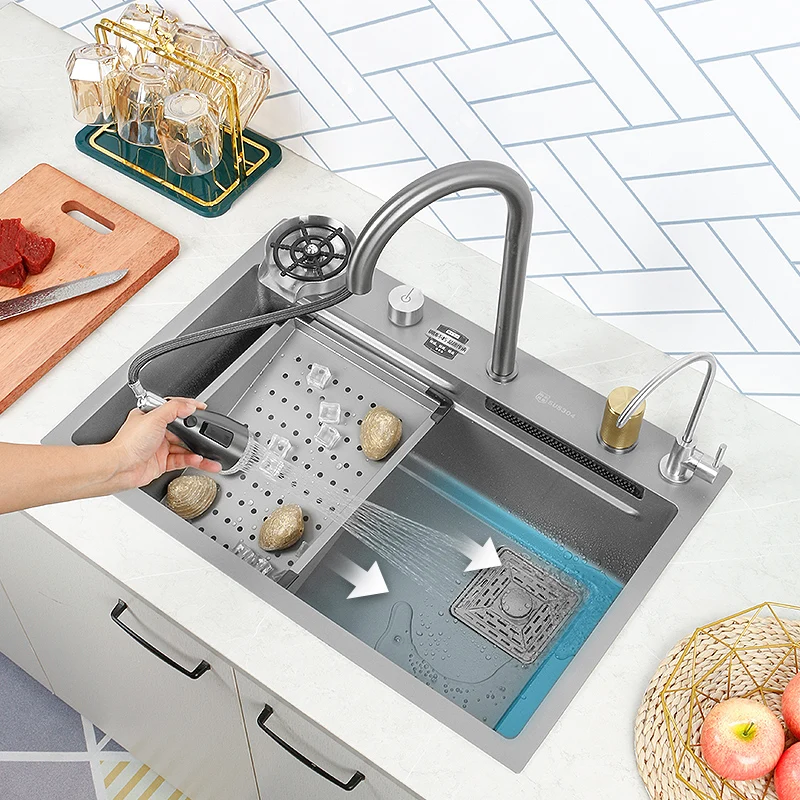 Kitchen Sink 304 Stainless Steel Large Single Slot With Multifunction Touch Waterfall Faucet For Kitchen Renovation - Купить с бесплатной доставкой