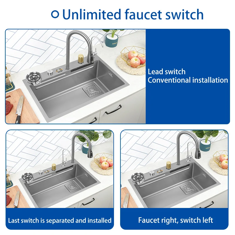 AJUgxGvzunЗдесь вы сможете купить Kitchen Sink 304 Stainless Steel Large Single Slot With Multifunction Touch Waterfall Faucet For Kitchen Renovation с бесплатной доставкой до вашего почтового отделения.