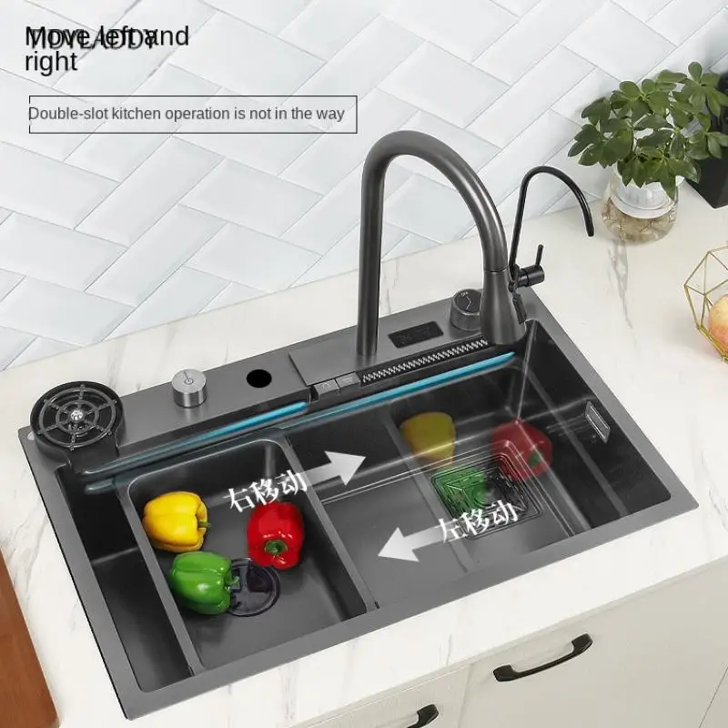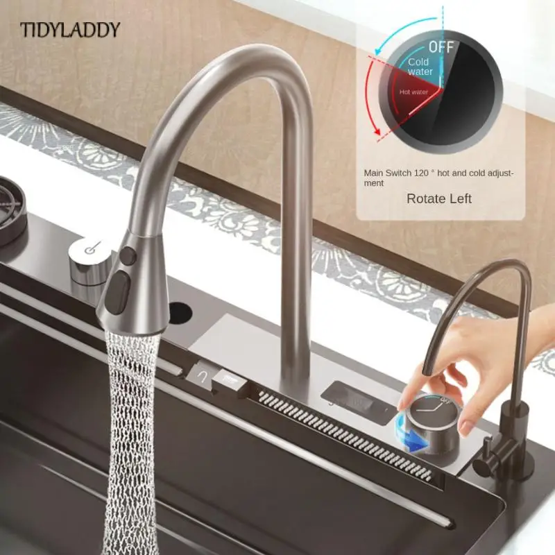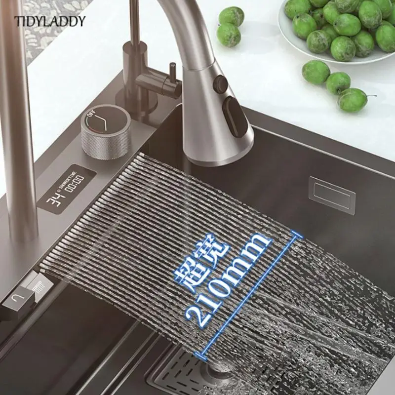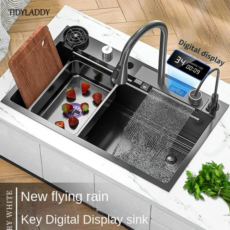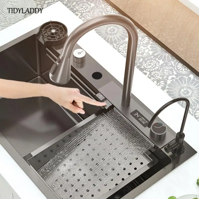 Kitchen Sink with Waterfall Faucet Stainless Steel Large Single Slot with Multifunction Touch Waterfall Kitchen Accessories - Купить с бесплатной доставкой