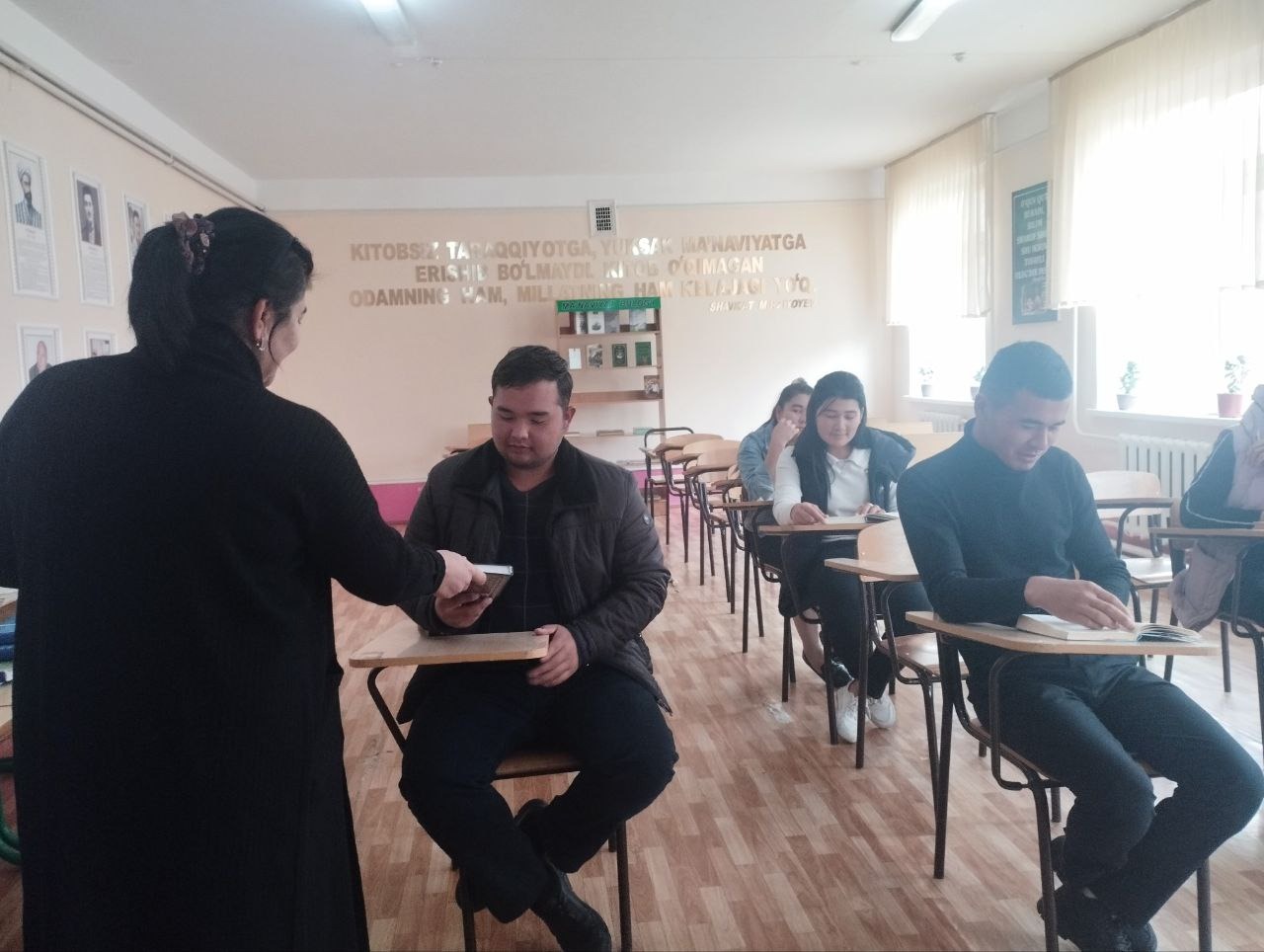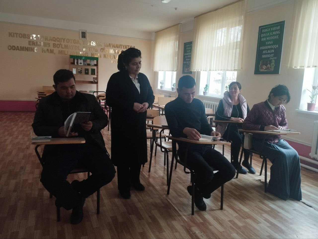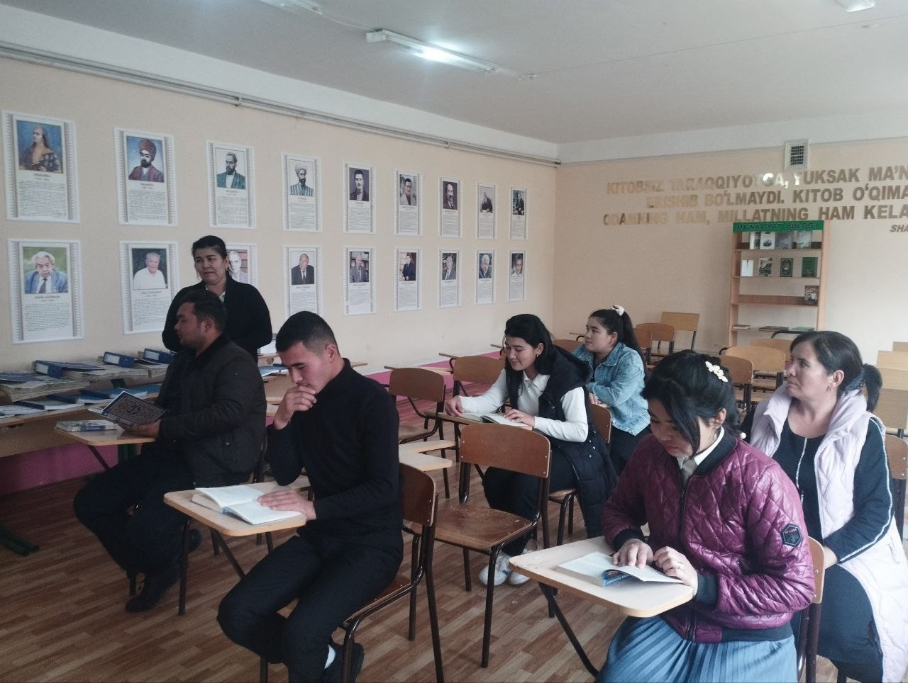 2022- 2026 yillarga mo‘ljallangan Yangi O‘zbekistonning taraqqiyot strategiyasini " Inson qadrini ulug‘lash va faol mahalla yili"da amalga oshirishga oid davlat dasturi ijrosi yuzasidan NAZORAT REJASIning 72-maqsad: Aholiga axborot-kutubxona xizmatini ko‘rsatishni yanada rivojlantirish, kitobxonlikni keng ommalashtirish "Kitobsevar millat" umummilliy g‘oyasini ro‘yobga chiqarish maqsadida 30-noyabr kuni Jizzax viloyati Zomin tumani axborot-kutubxona markazining ko'chma kutubxona mutaxassislari Z.Azimova hamda G.Fayzullayeva, X.Mirzayevalar "Kitob insoniyatning qalb gavhari, tafakkur xazinasidir " mavzusida Abu Ali ibn Sino nomidagi jamoat salomatlik texnikumiga tashrif buyurib kutubxonaga kelgan yangi adabiyotlar bilan kitob o'qish soati tashkil etildi hamda yangi adabiyotlar haqida ma'lumotlar berildi. Kitobxonlar kutubxonaga a'zo qilindi.