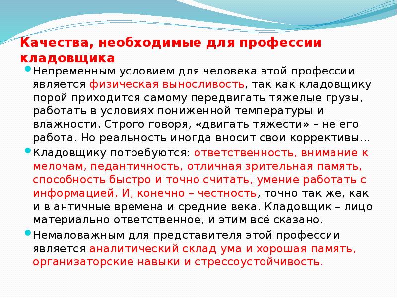 Кладовщика специальность