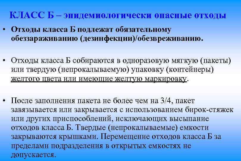 Класс б эпидемиологически опасные отходы