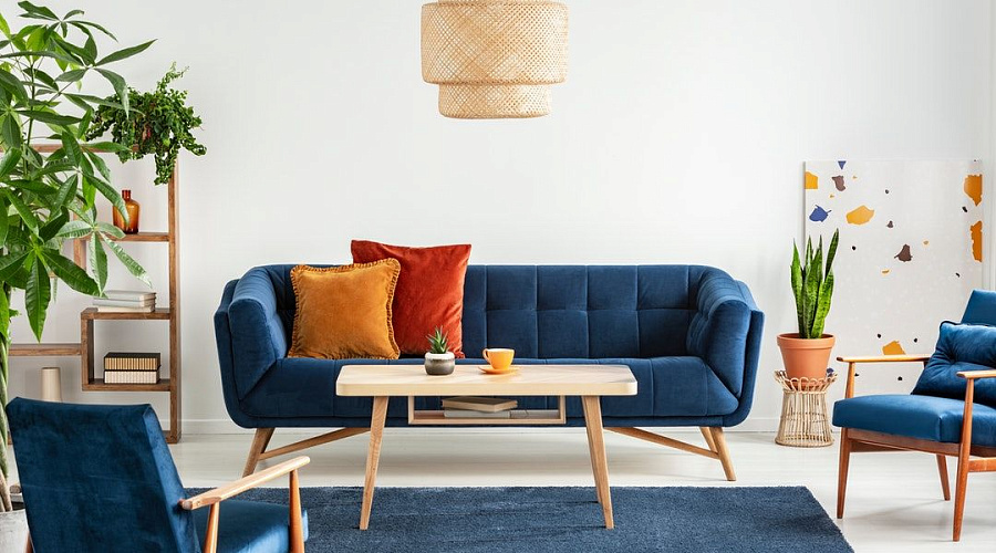 Синий диван в интерьере: 70+ фото, идеи для гостиной . . .