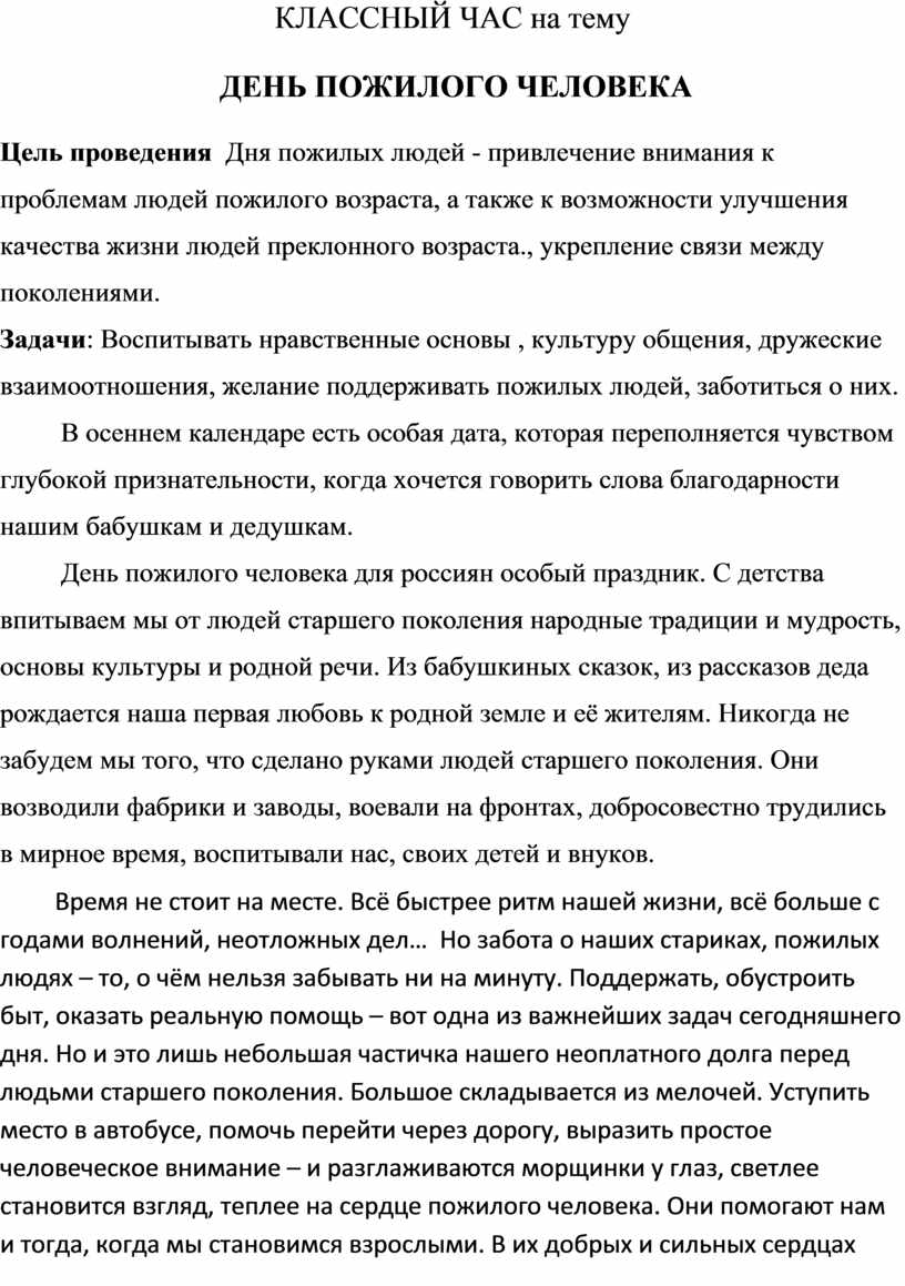 Классные часы ко дню пожилых людей 73 фото
