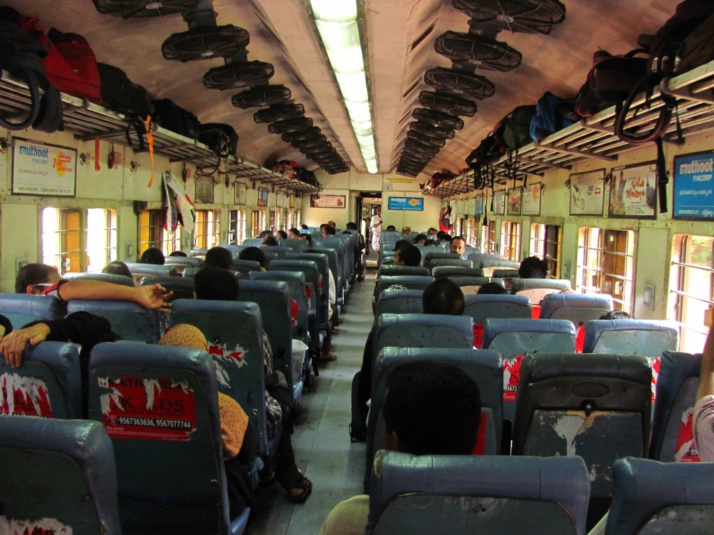 Вагон такой же, как слиппер, в который продаются сидячие места, — шесть человек в купе и два на боковых. Идеальное решение для дневных поездок на небольшие расстояния вроде Варкала-Алепи или Дели-Джайпур. Конечно, там намного больше людей едут чем 6 человек в купе. Тити не обращает на это внимание, проверяет билеты через одного индийца и жует бетель.
