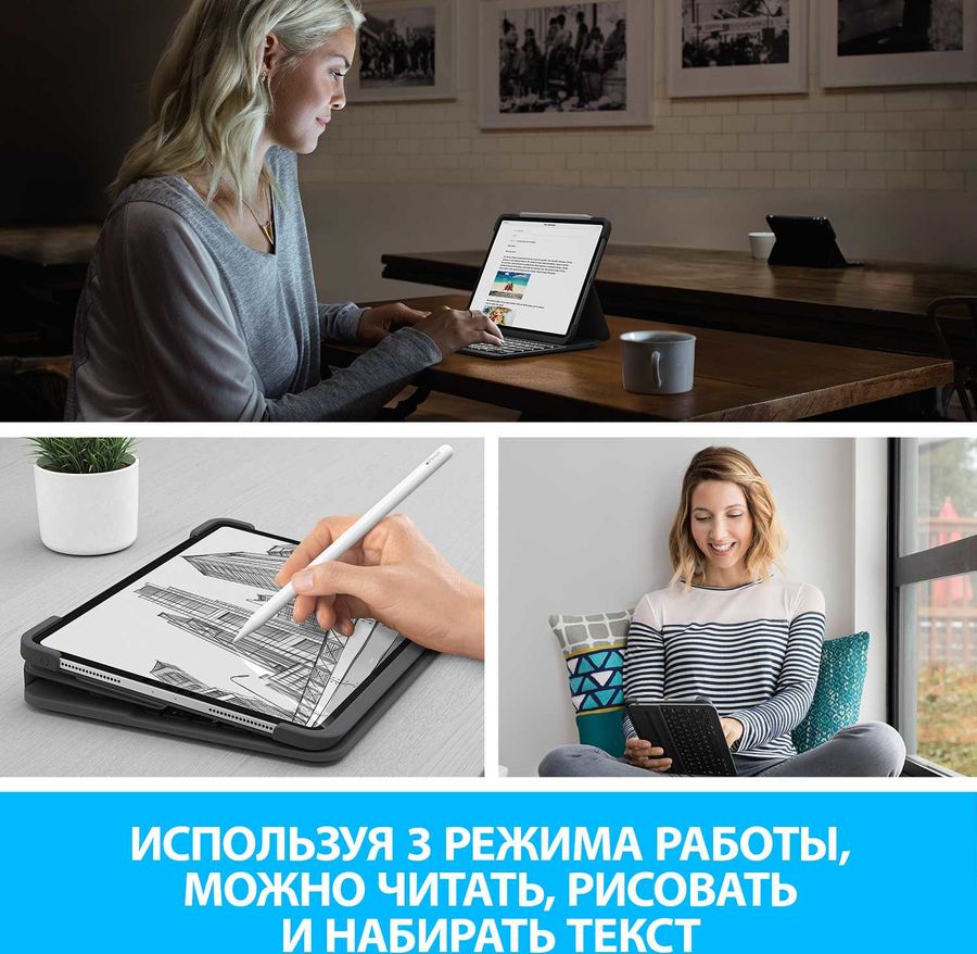 Чехол-клавиатура Logitech Combo Touch для iPad Pro 12 .9, . . . Чехол-клавиатура Logitech Slim Folio для iPad 10,2", . . .