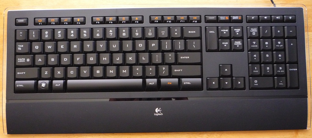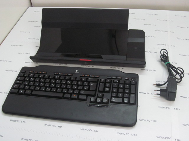 Клавиатура — вполне обычная для Logitech , не из дешёвых . Подставка для запястий не мягкая, не скользкий пластик . Он использован и в отделке подставки для ноутбука вместе с оргстеклом .