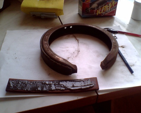 Клеим колодки тормозные