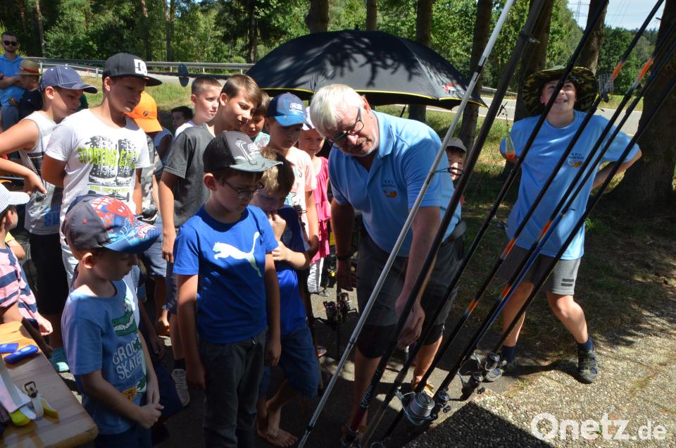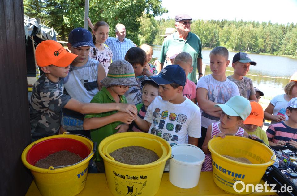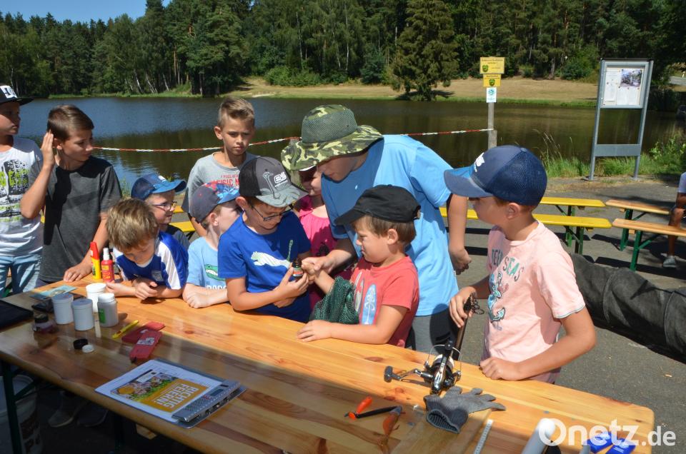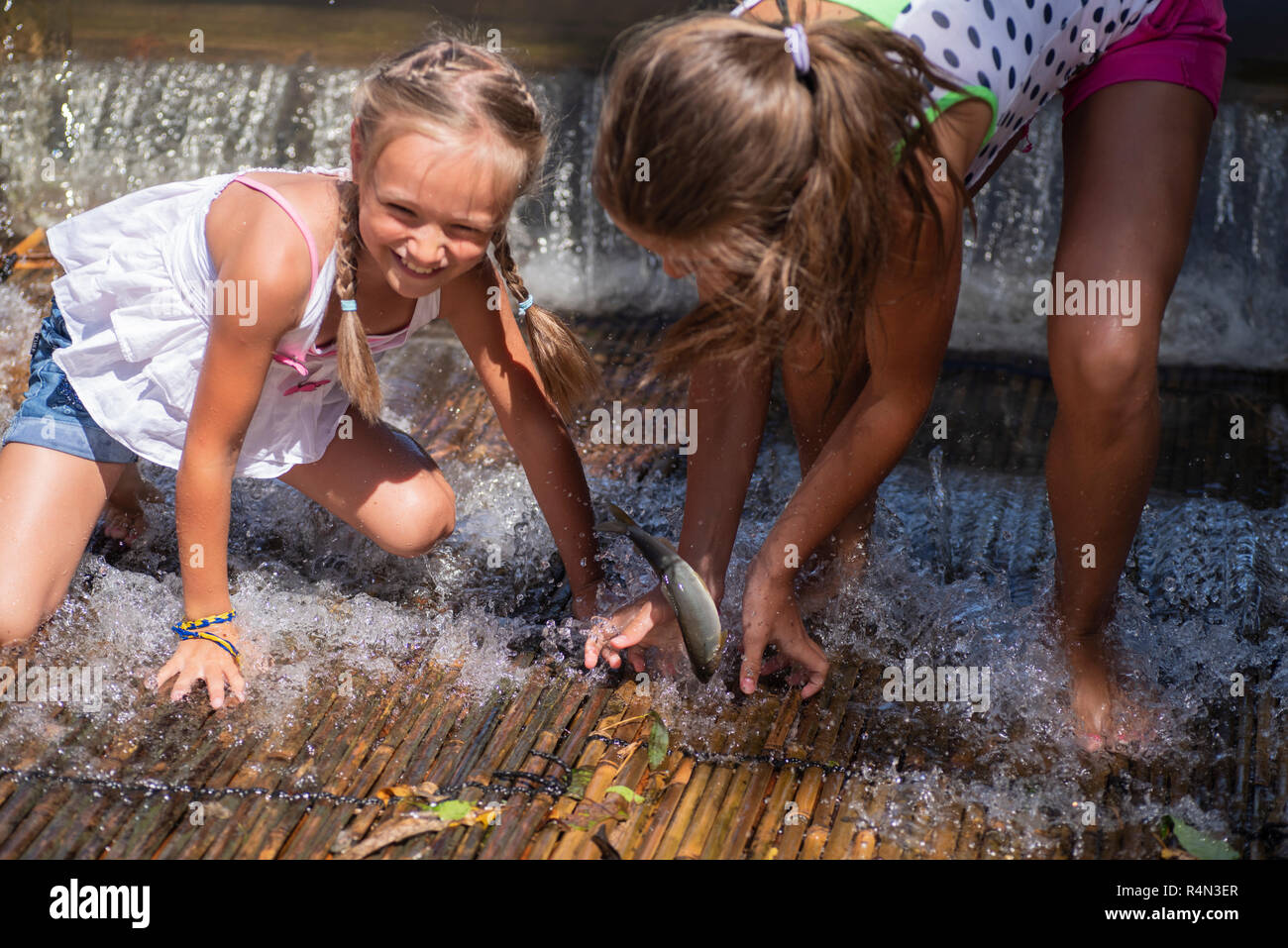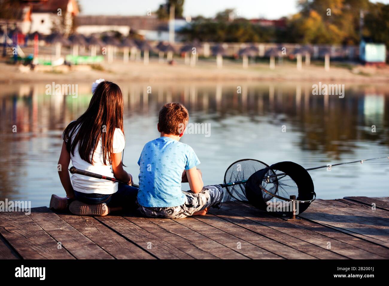 Kleine Mädchen fischen am anderen Ufer