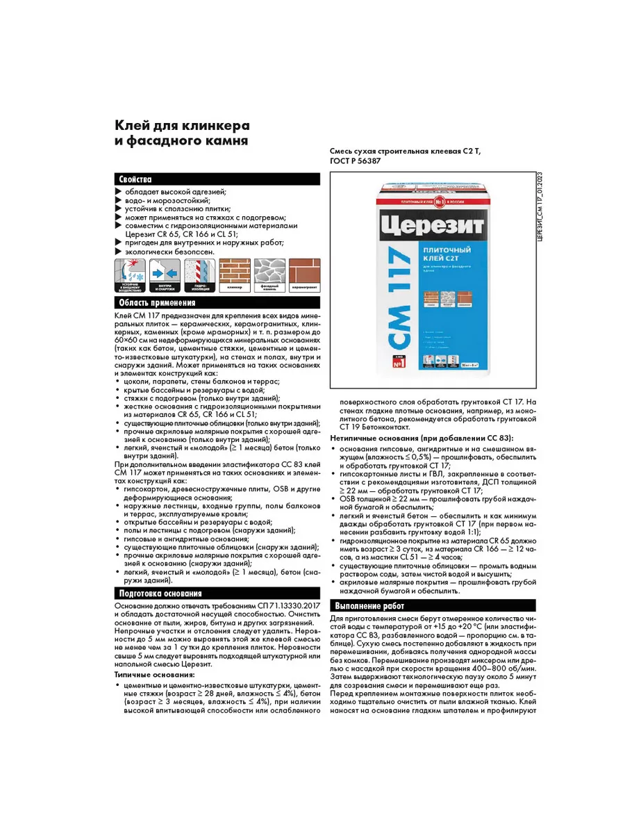 Клей для плитки 117