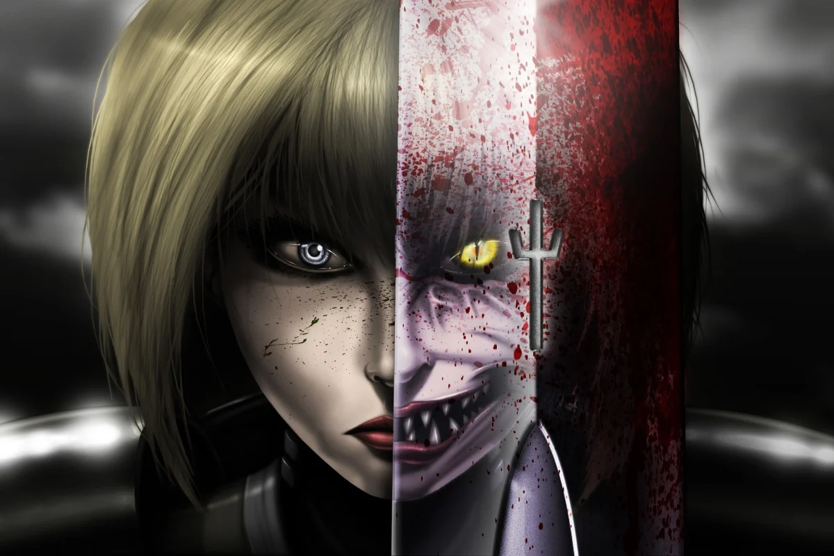 Описание . Альтернативное средневековье . В этом мире людям приходится сосуществовать с монстрами ёма, охотящимися на людей и пожирающими своих жертв . Для борьбы с ёма некая Организация создаёт орден воинов полулюдей, полуёма, и этот орден встаёт на защиту . . .