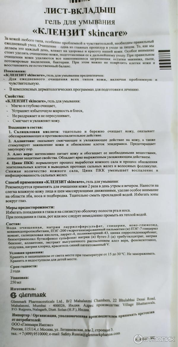 Клензит гель для умывания . Инструкция, отзывы, цена