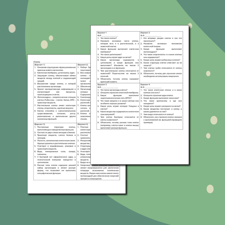 Клетка строение тест егэ