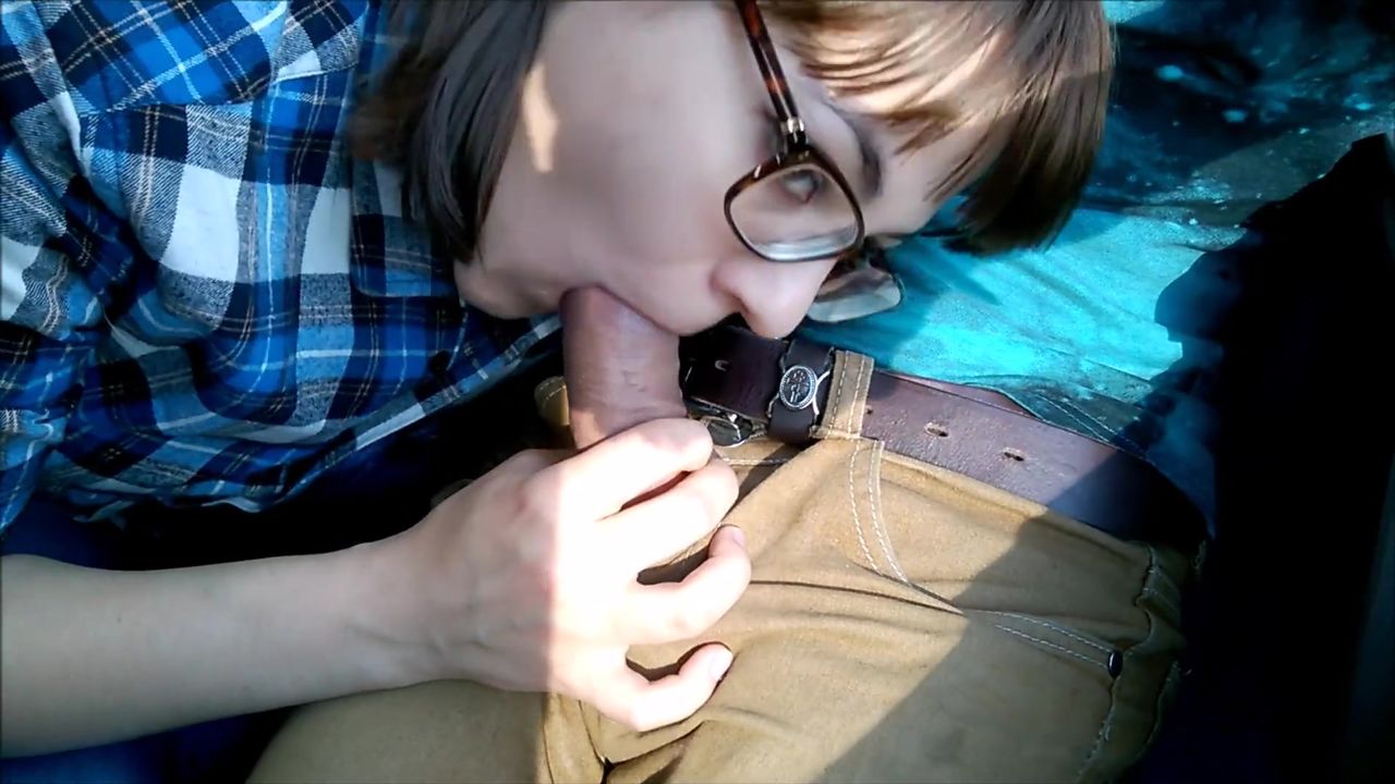 Телочка с приятным личиком делает охуительный минет на . . .