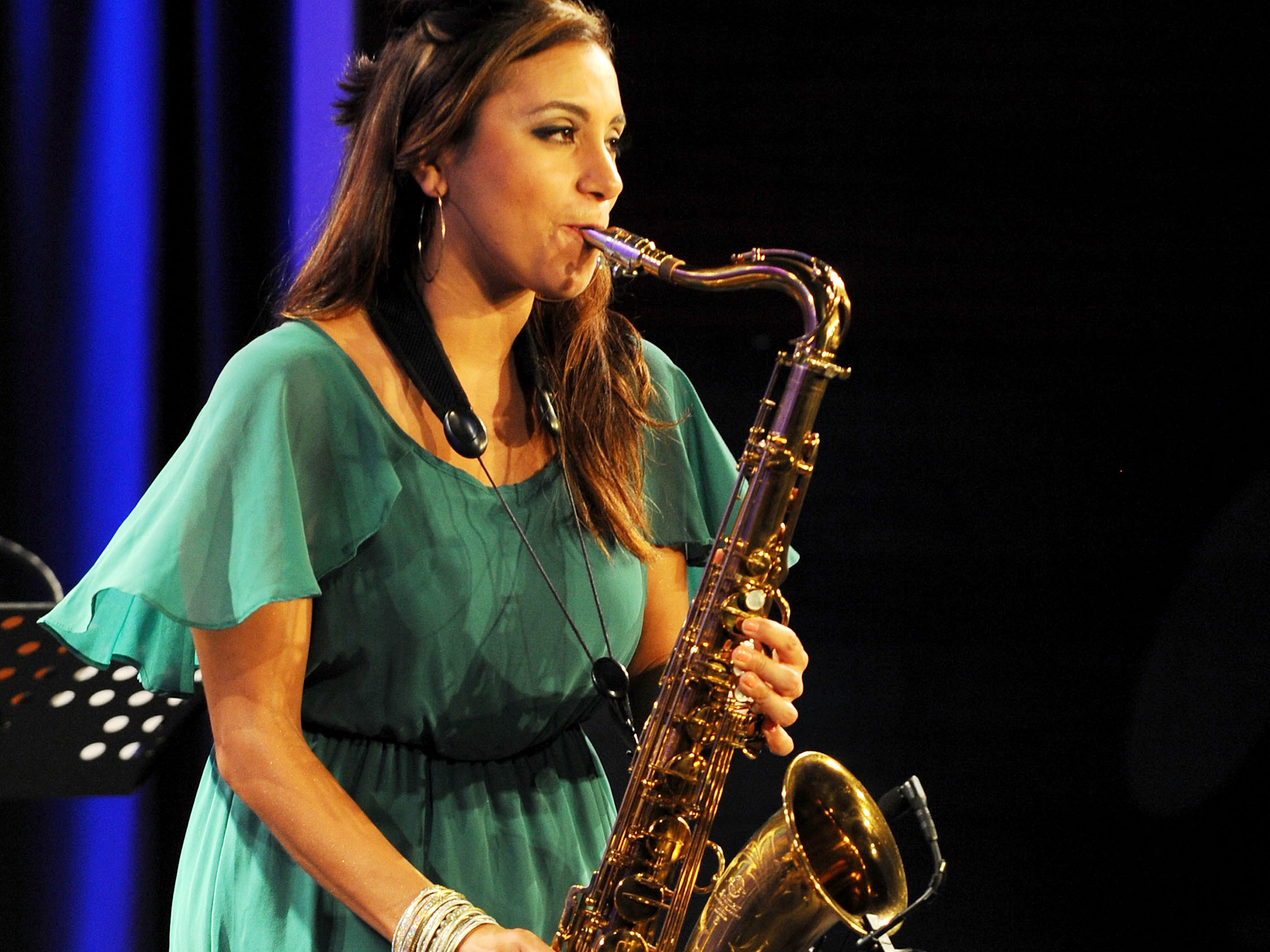 Клип девушки с саксофоном в зеленых 102 фотографий