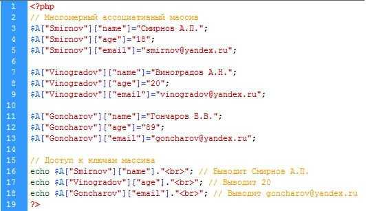 Ключи в ассоциативном массиве