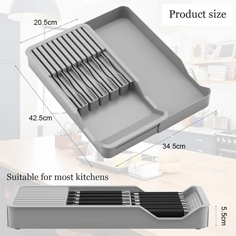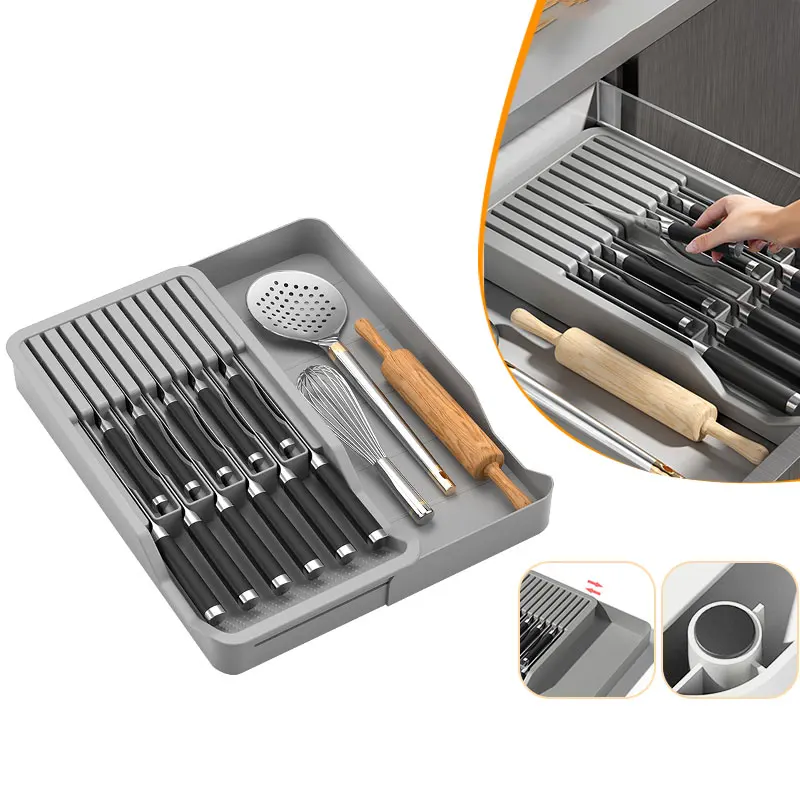 eybzgRjgTHere you can buy Knife Block Holder with Expandable Organizer Storage Tray for Kitchen Countertop Retractable Knife Organizer Drawer Insert with free delivery to your post office.