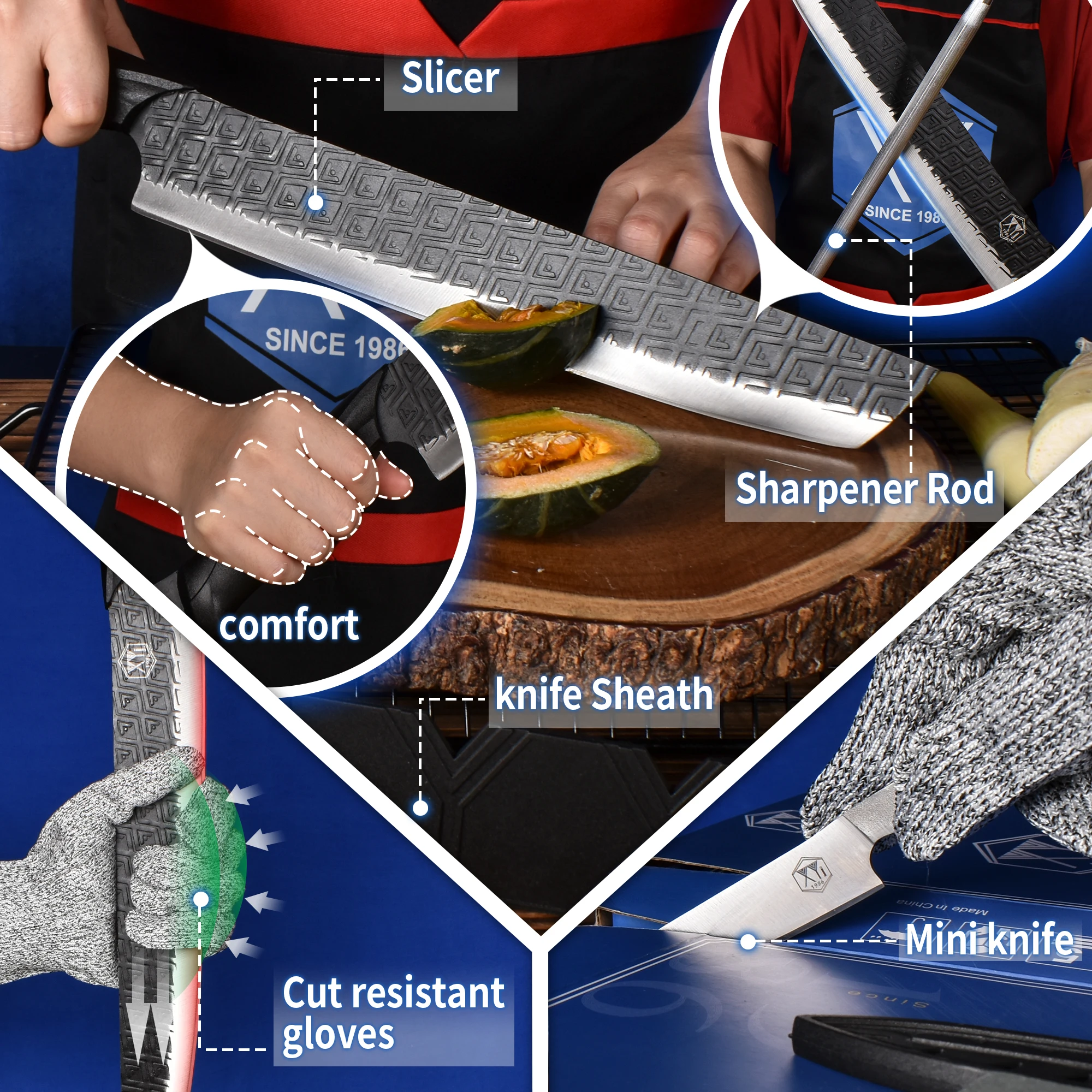 eNIxjaQnHere you can buy Knife Kitchen Tool Meat Cleaver Vegetable Chopper Long Blade 11.5 Inch Fillet Fish Slicing Knife for Men Sharpening Stick Tools with free delivery to your post office.