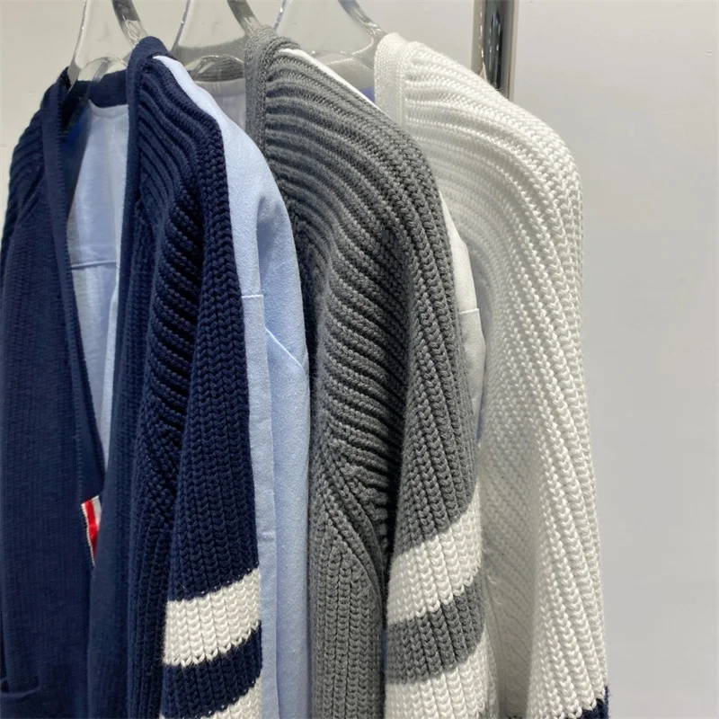 «Knitted Cardigan 22 Autumn and Winter TB School Wind Holiday Two Shirts Stitching Sweater Bottoming Niche Design Coat» по лучшей цене на рынке! Всего за 52$ (4940рублей)