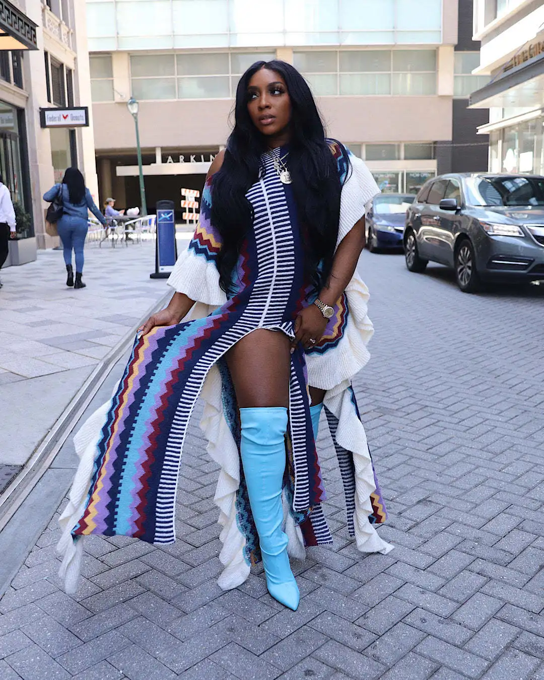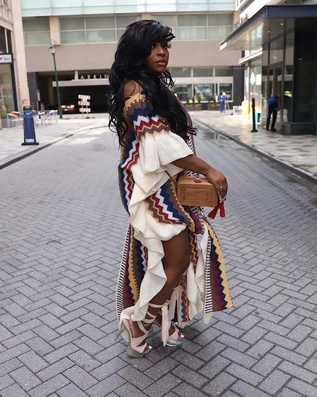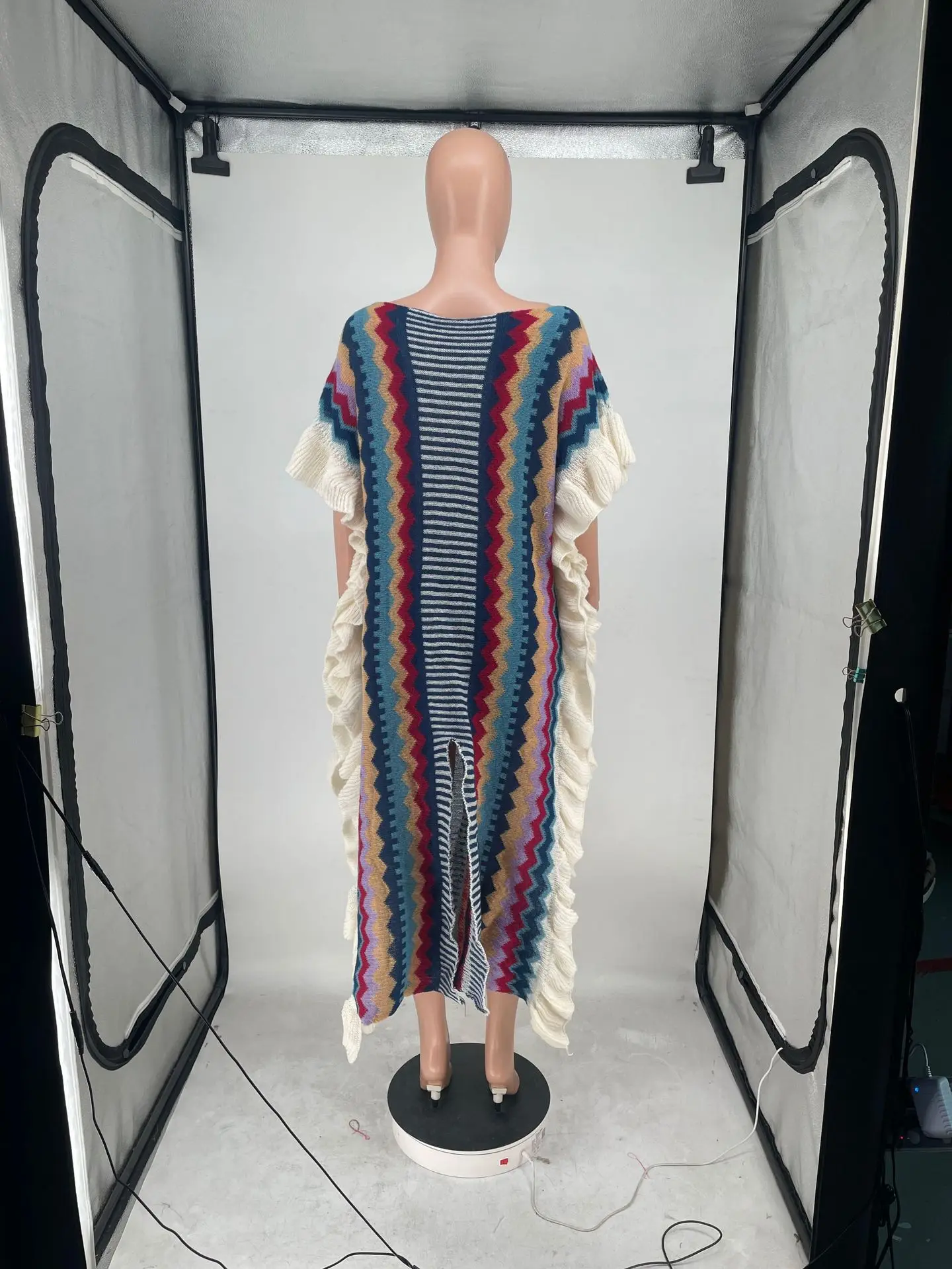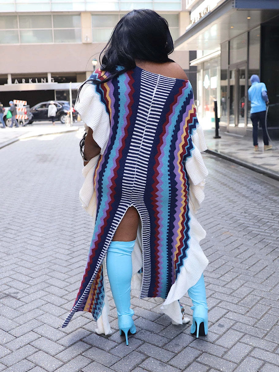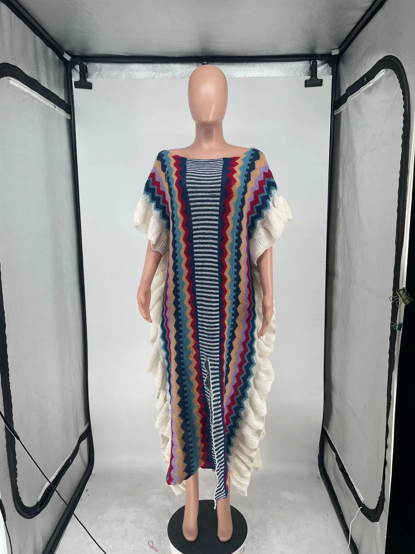DLGFsMVsHHere you can buy Knitted Colorblock Cloak Long Dress For Women Striped Ruffled Sleeve Slit Maxi Dresses Irregular Beach Cover Ups Chic Party Robe with free delivery to your post office.
