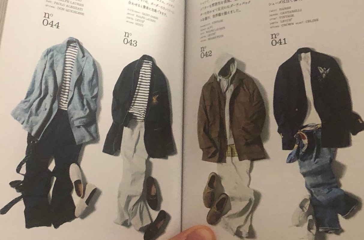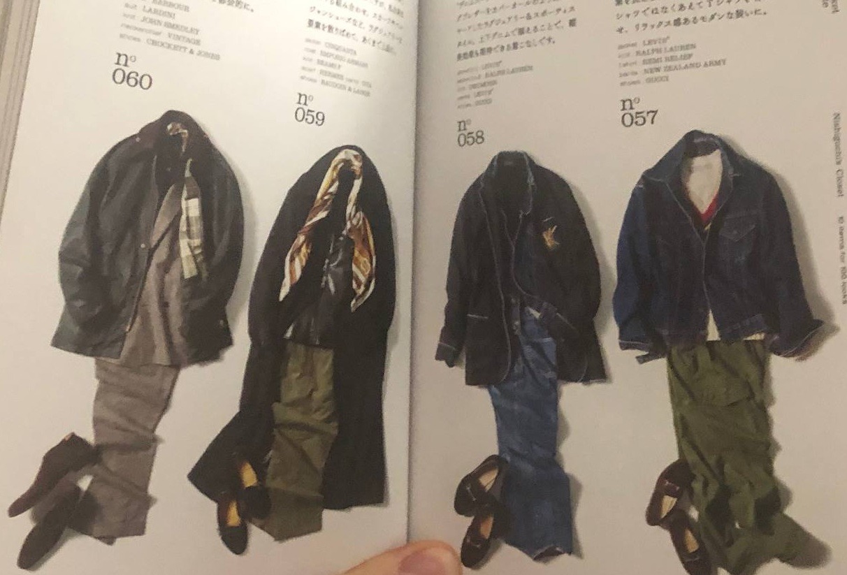 2) Если вы не читатель, а смотритель (картинок), то вам больше понравится другой зверь. Книжка главреда японского журнала Beams Шухеи Нишигучи. В ней собраны ключевые (на его взгляд) предметы гардероба и собраны луки из них. Ну то есть текст в ней тоже есть, но на японском (да, и читать ее надо справа-налево, то есть с конца).