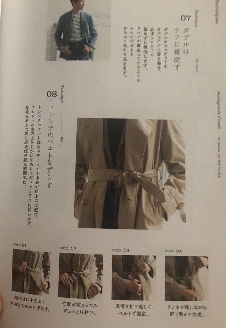 Мало какие луки нравятся мне целиком, но есть интересные идеи с карго-штанами и худи (люблю их, guilty as charged, но я молодой отец, мне можно), тельняшками и т. д. Плюсы картинок в их самоочевидности. Разобраться, как завязывают пояс от тренча японские модники, можно и не зная японского.