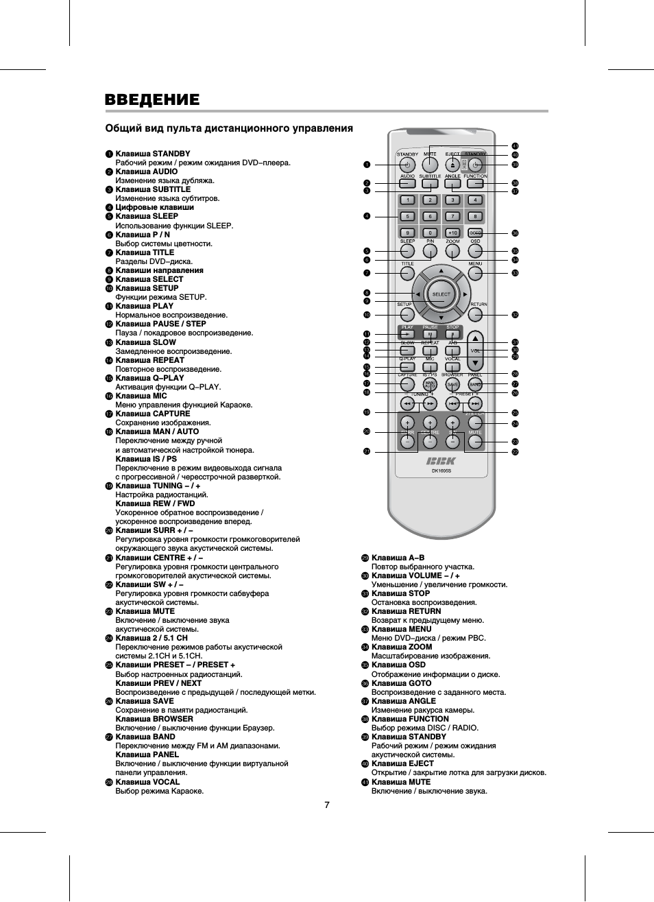 Кнопки на пульте bbk