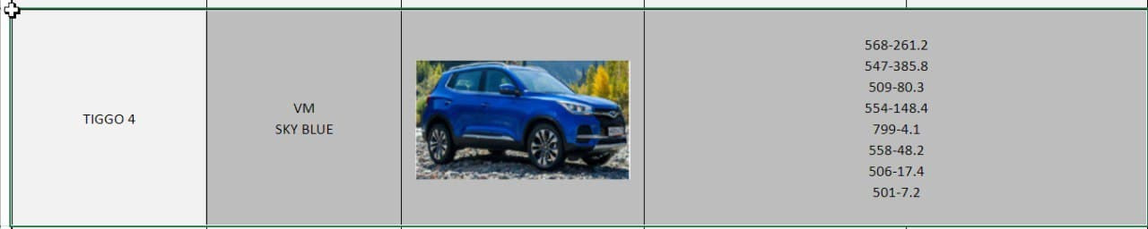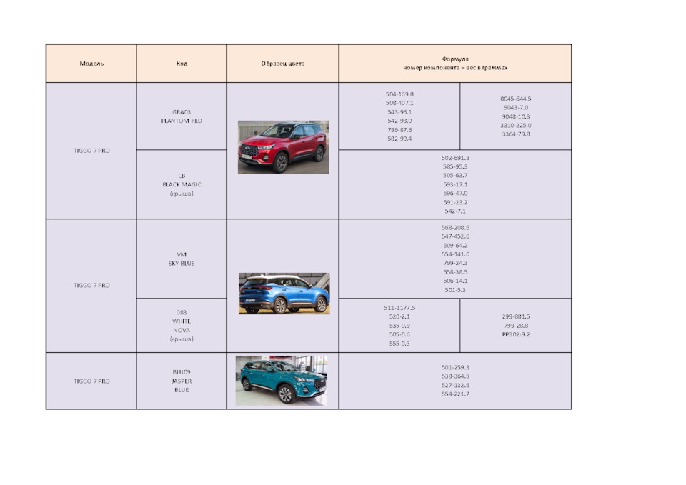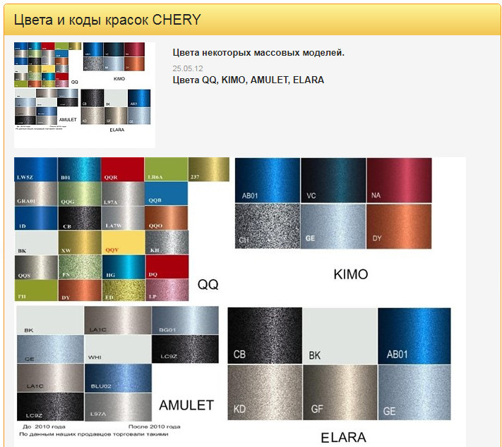 Код цвета chery