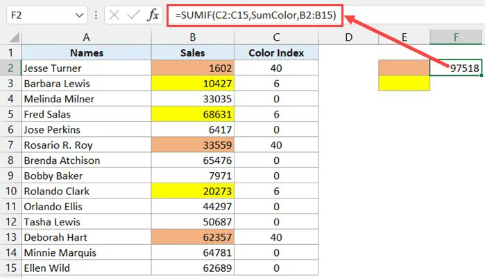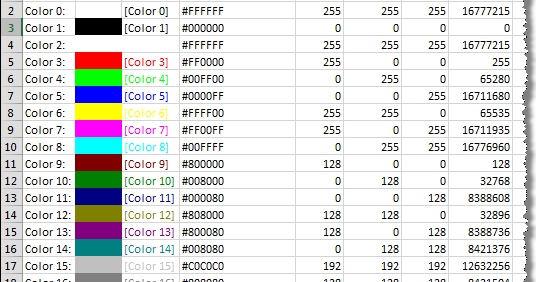 Код цветов эксель