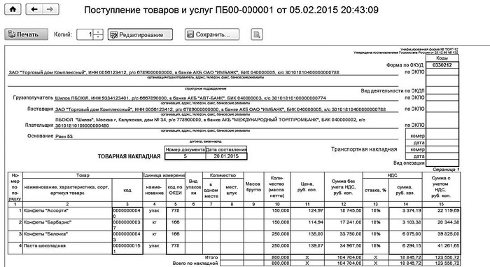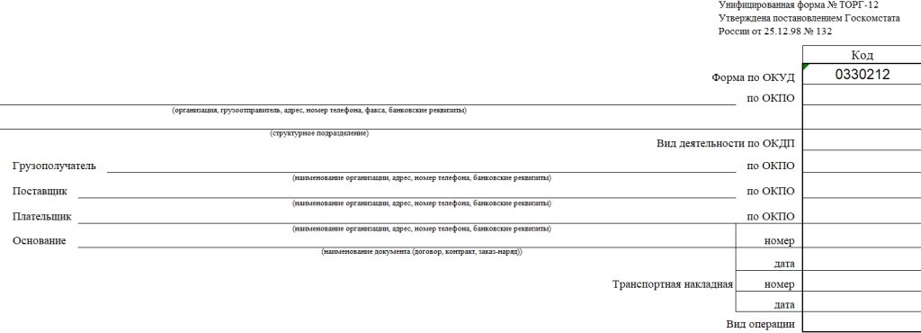 Код формы накладной