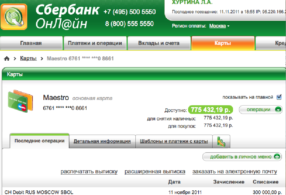 Код карты с деньгами на счету