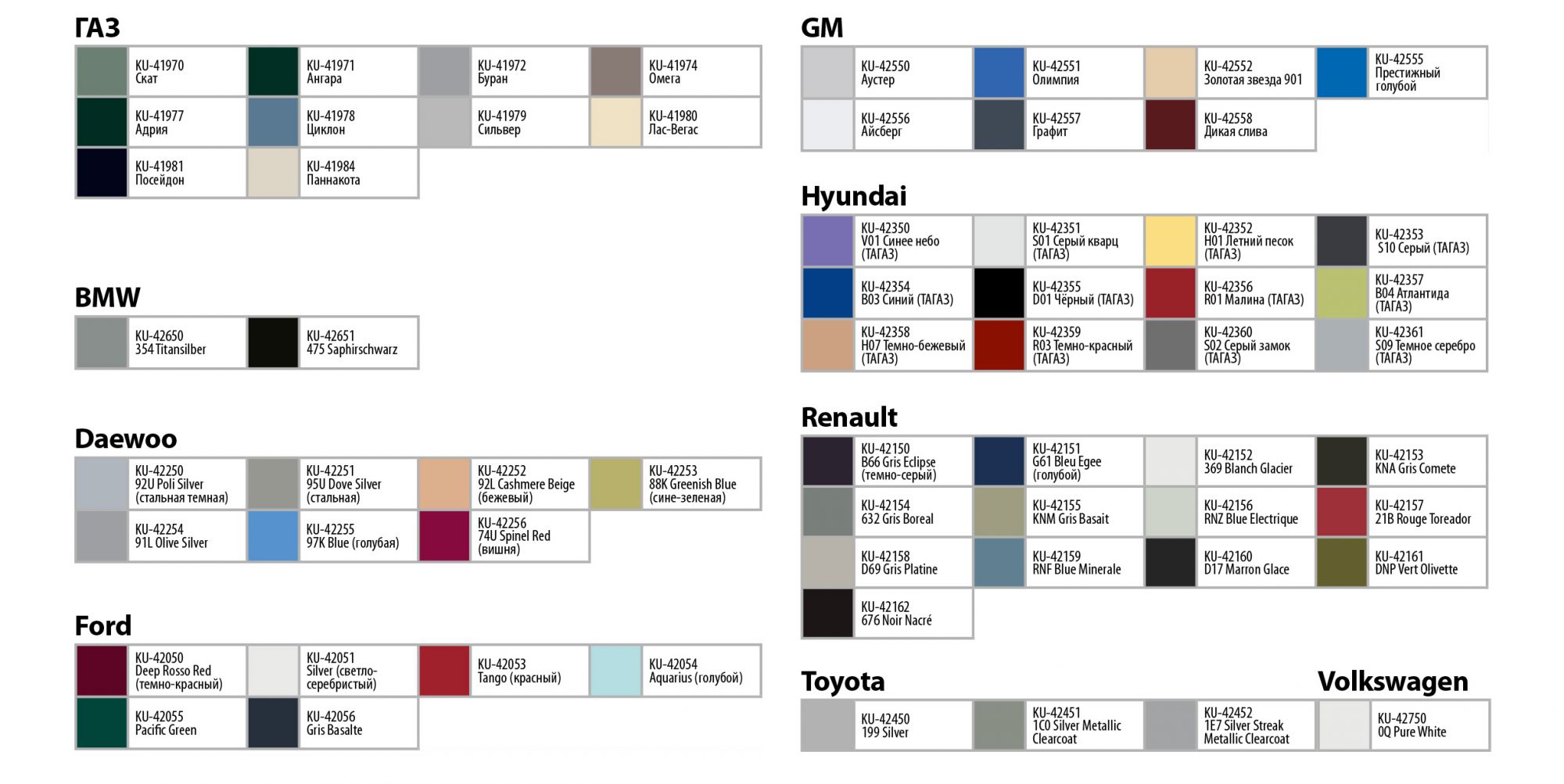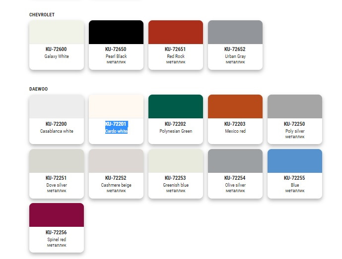 Код краски daewoo