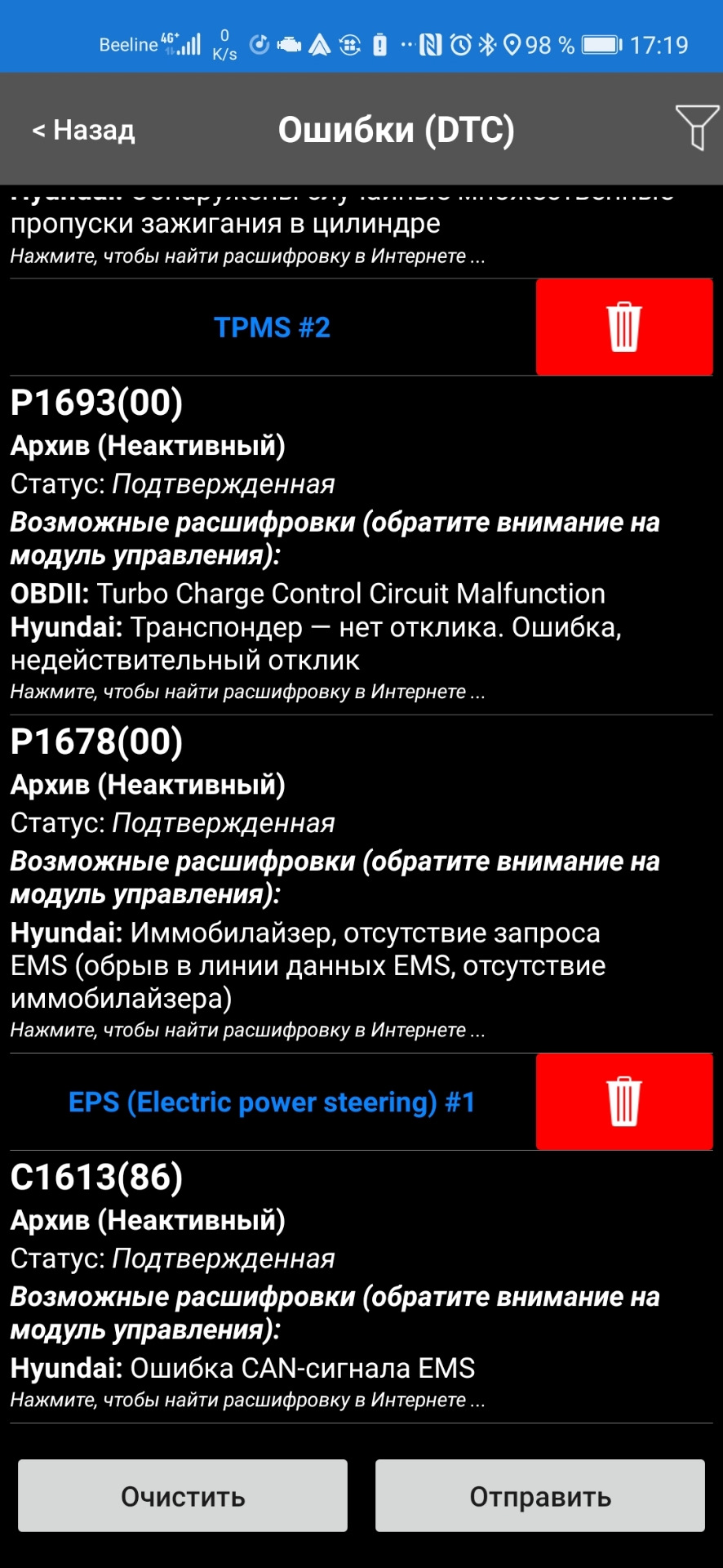 Код неисправности хендай