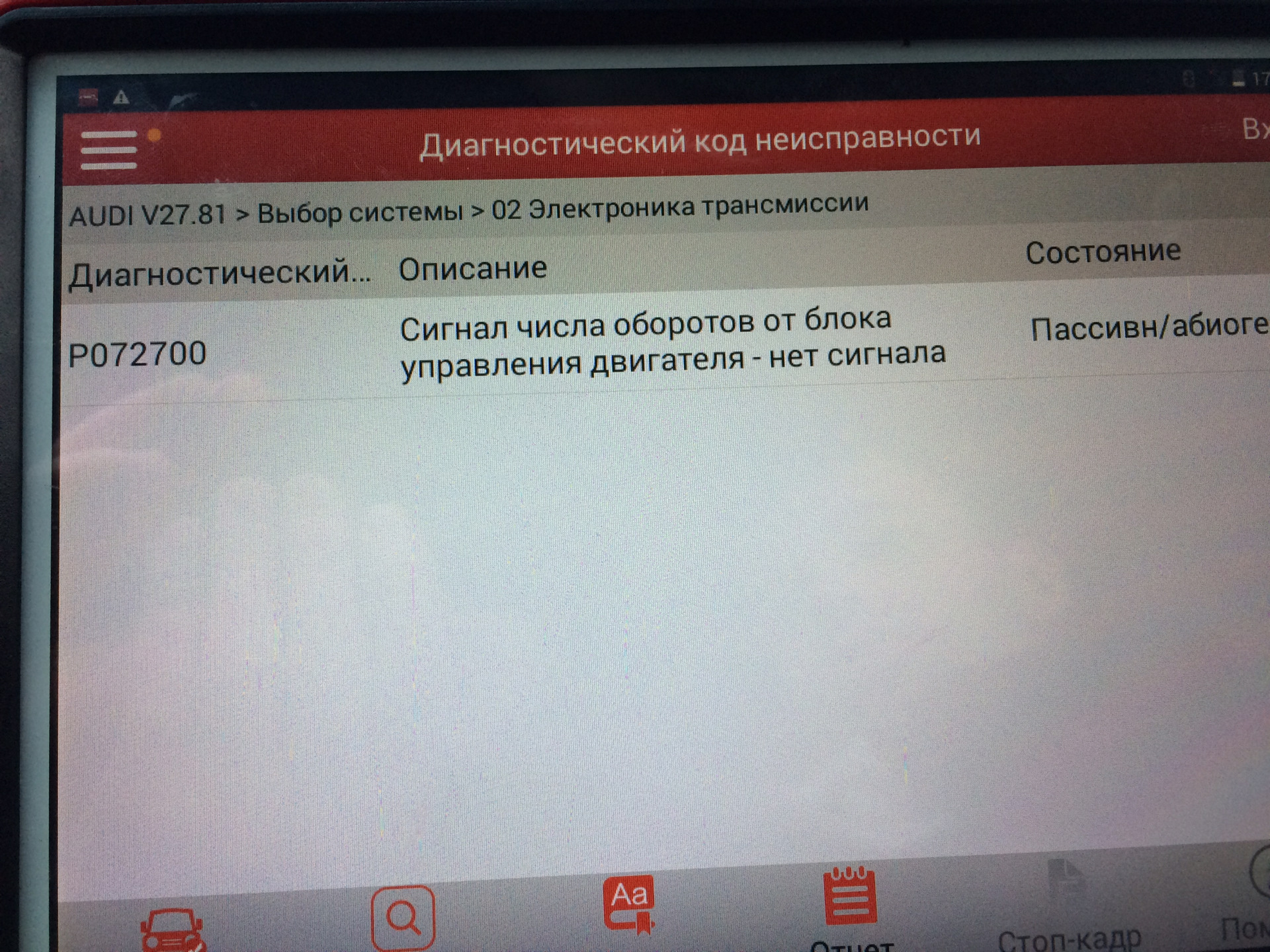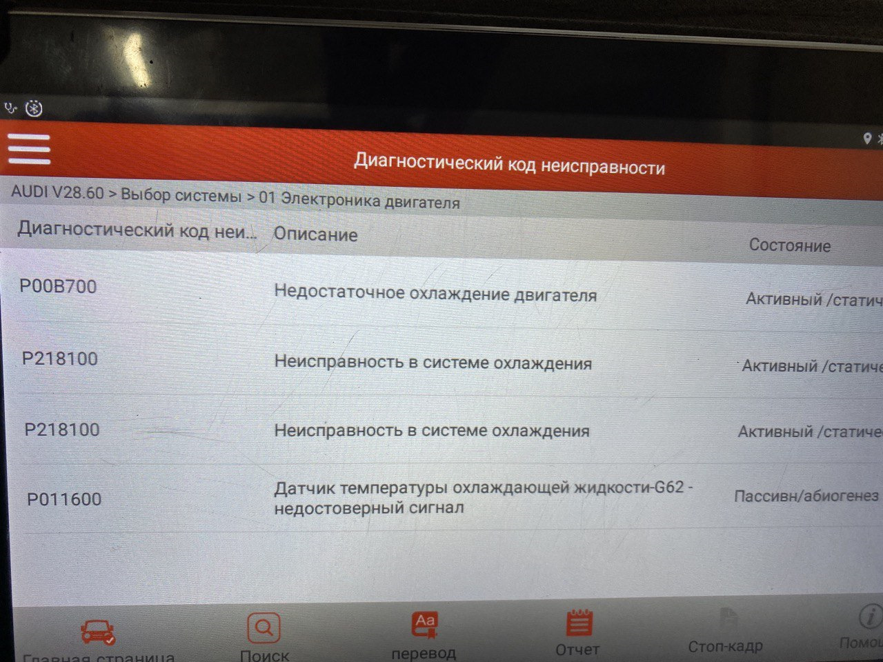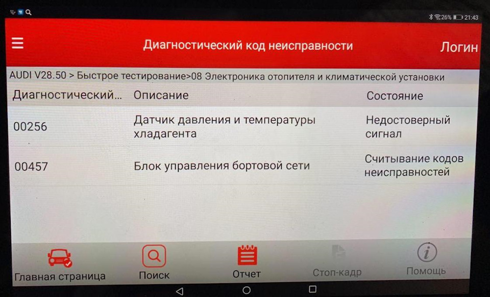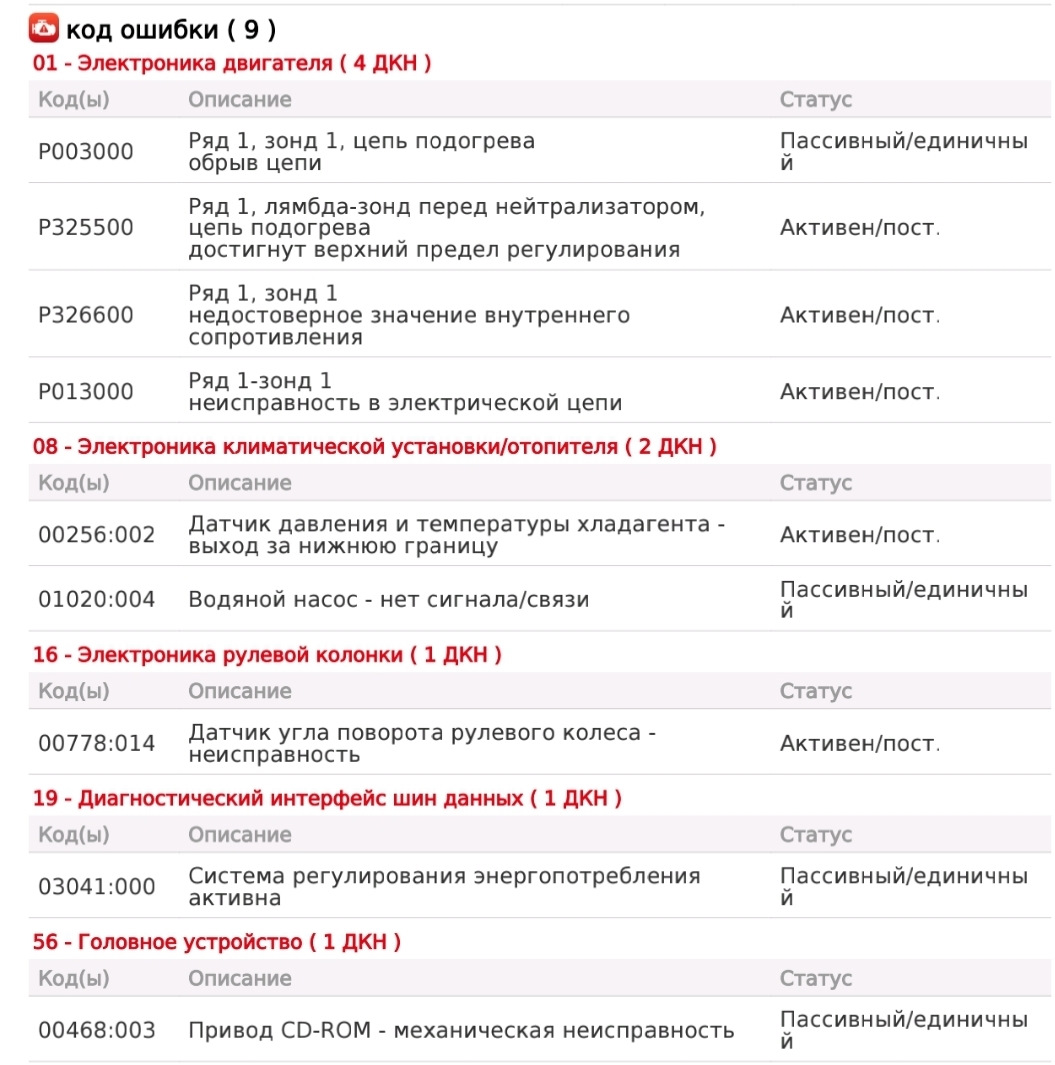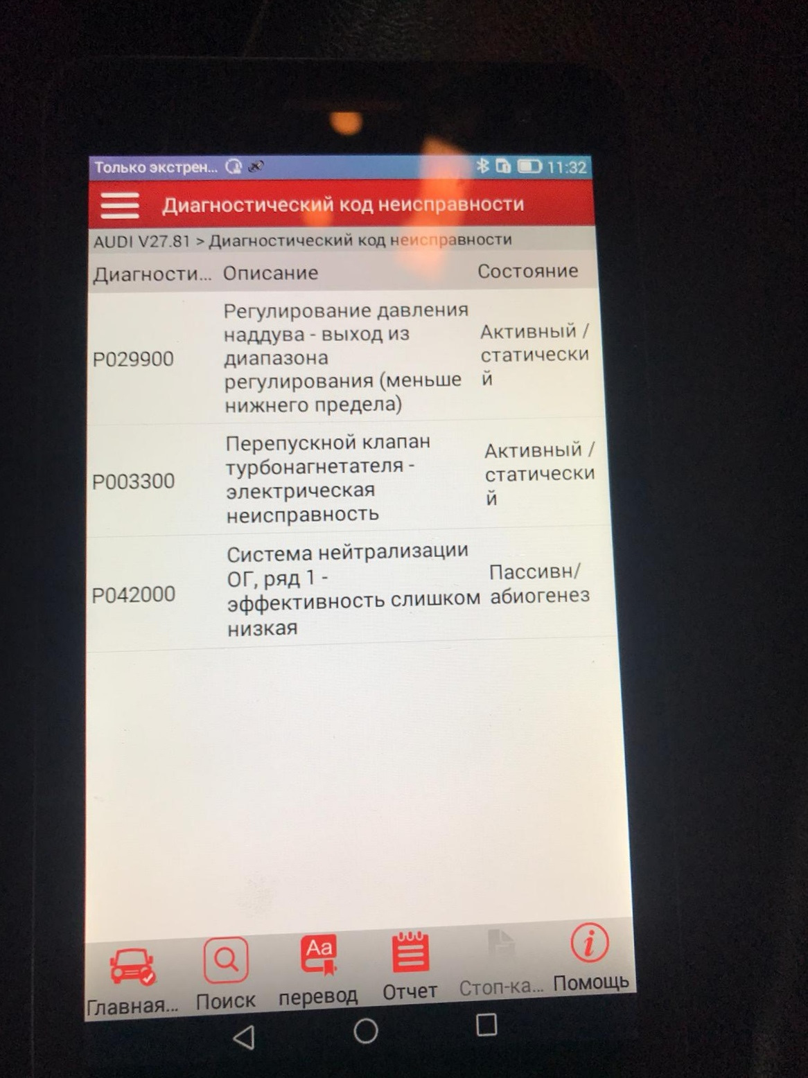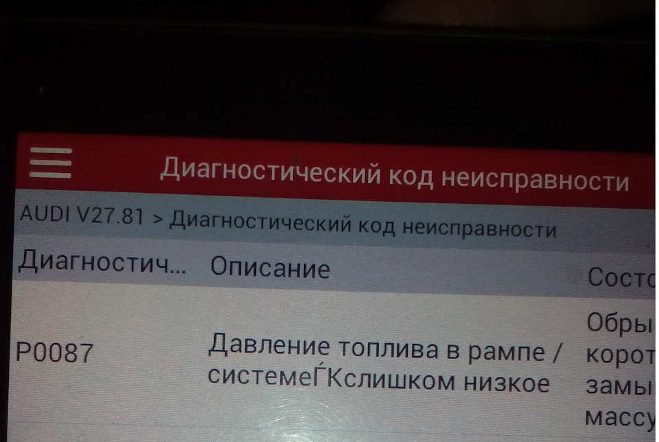 Код ошибки audi