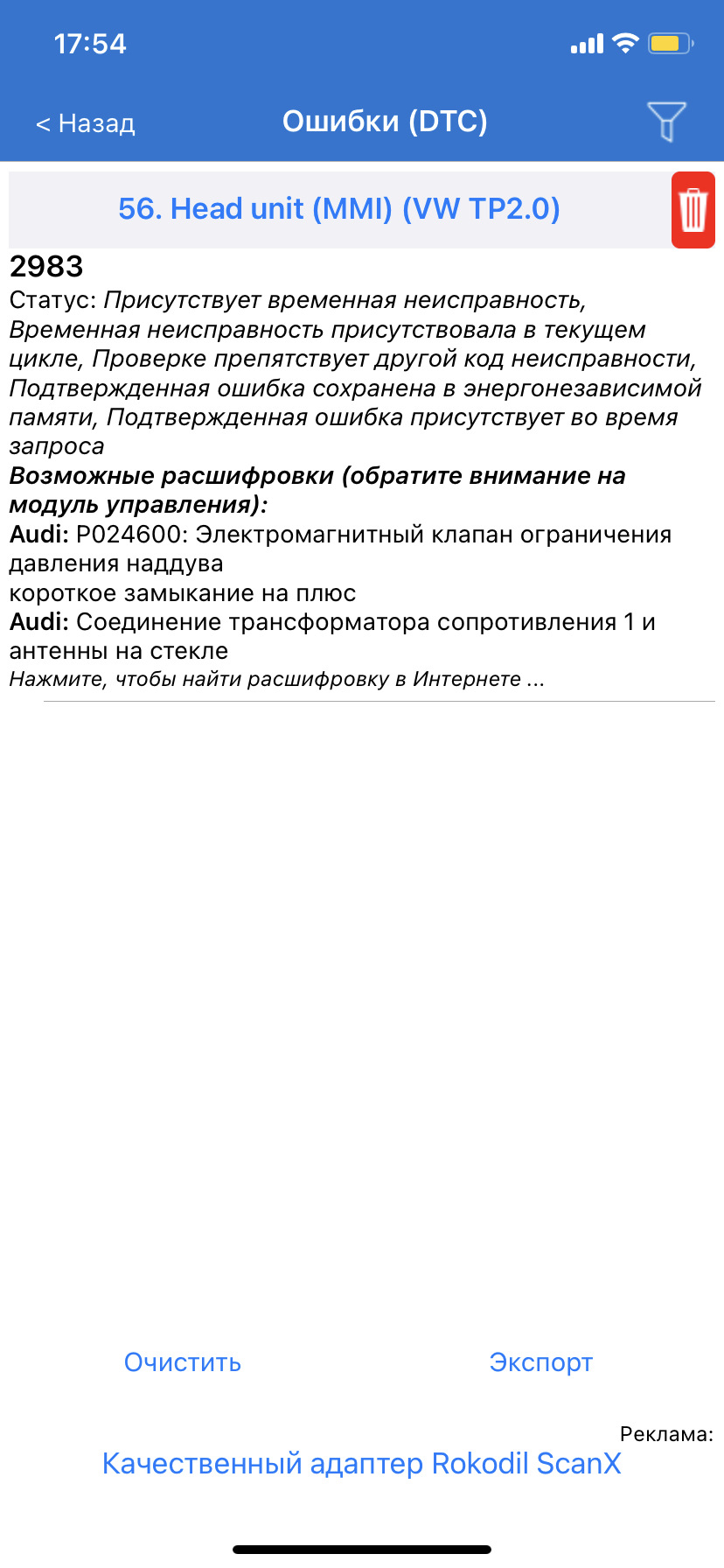 Код ошибки audi 146 фото